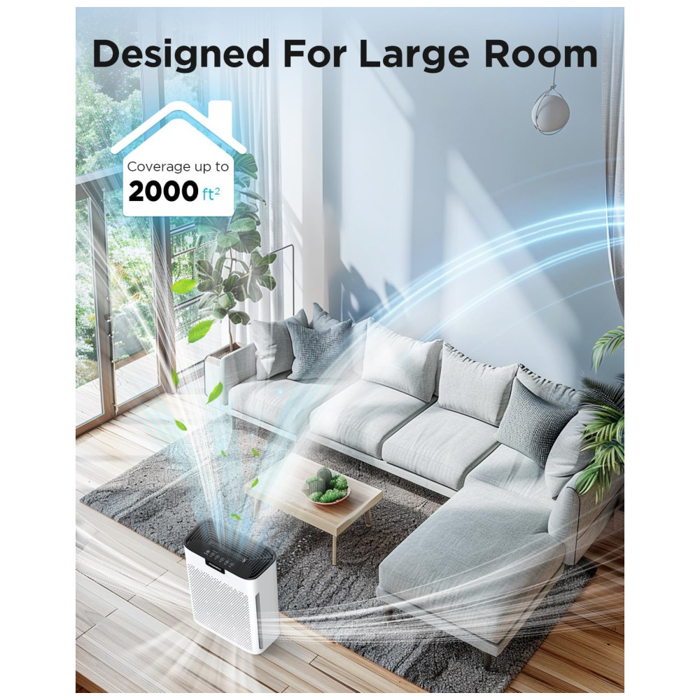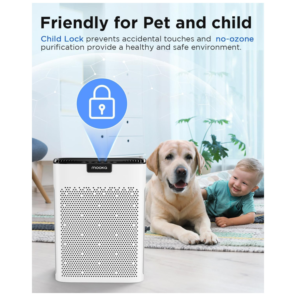 Este purificador de ar foi projetado especialmente para amantes de animais de estimação, apresentando uma entrada de ar frontal maior e uma entrada de ar dupla lateral mais ampla, facilitando a retenção de pelos e odores. Com um sistema de filtragem de 3 estágios de alta eficiência, ele é capaz de filtrar partículas tão pequenas quanto 0,3 mícrons, incluindo pólen, poeira e pelos de animais.