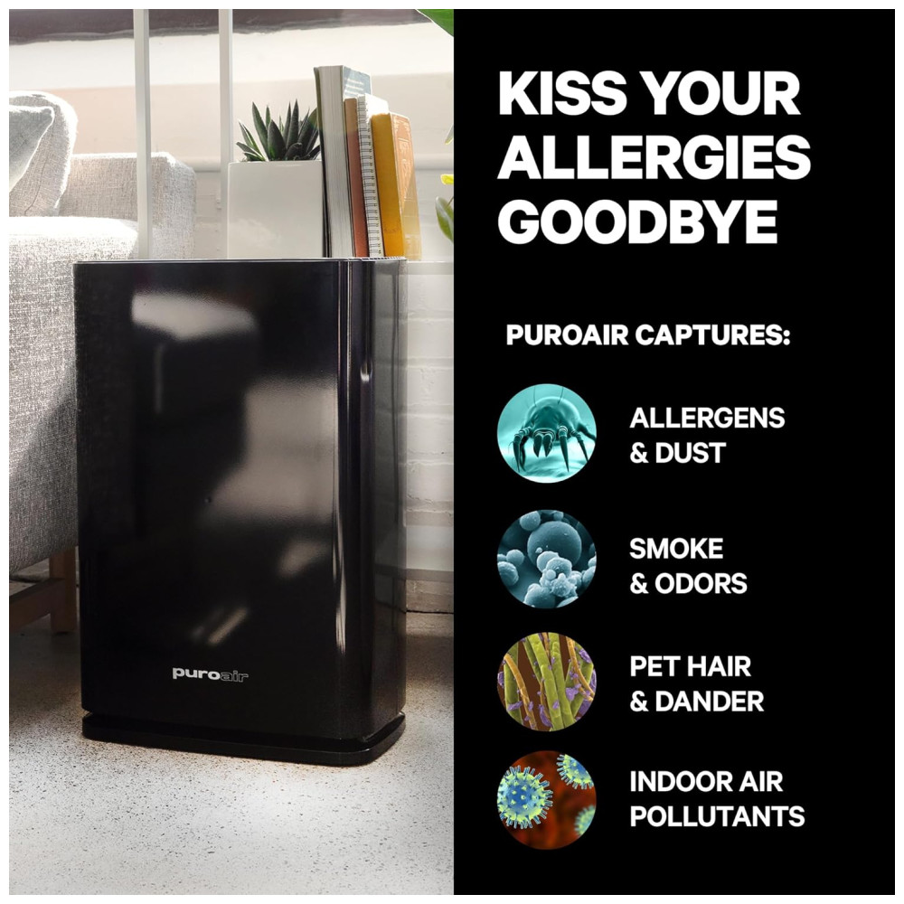 Purificador de Ar para Ambientes até 200m² com Sensor de Qualidade Indicador de Substituição do Filtro e Trava para Crianças 110V PuroAir PA400 Preto