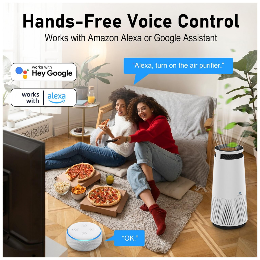 Purificador de Ar para Ambientes até 21m² com Filtro HEPA H13 Conexão via Wi-Fi e Saída de Ar de 360° 110V DH Lifelabs Branco e Preto