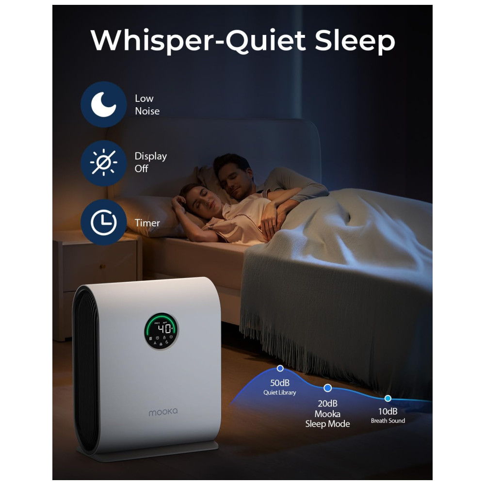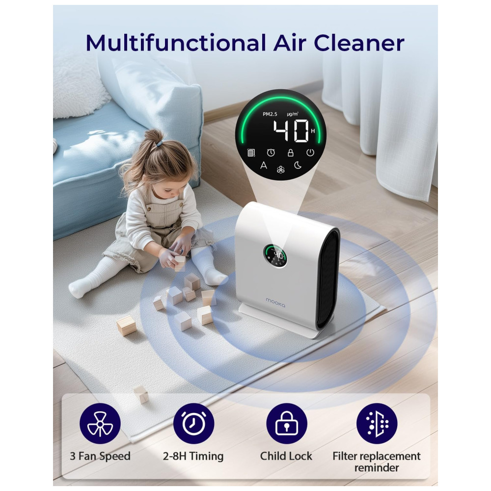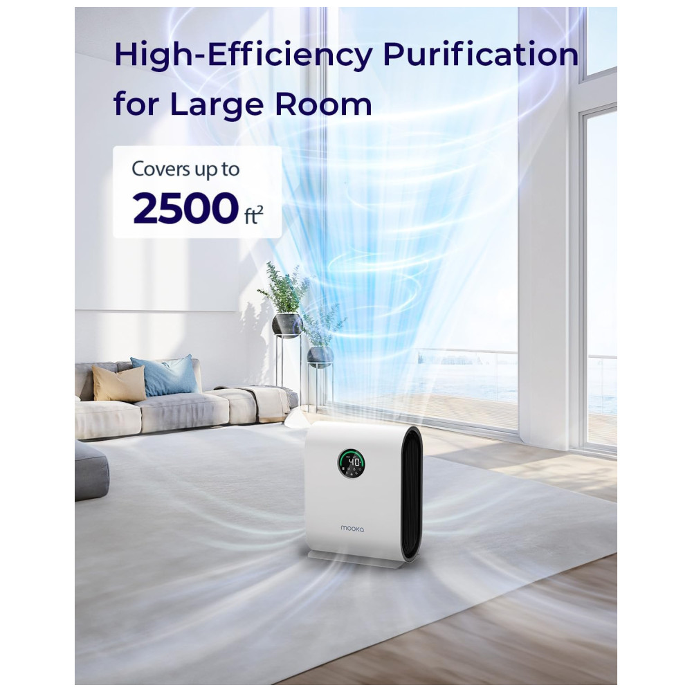 Purificador de Ar para Ambientes até 230m² com Filtro H13 HEPA Modo Automático Temporizador e Visor LED PM2.5 110V MOOKA KJ217 Branco