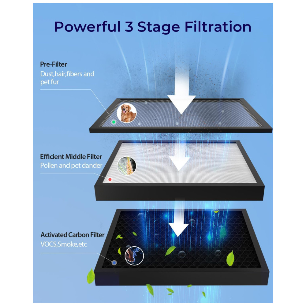 A substituição do filtro é fácil: basta abrir a tampa e trocar ou retirar o filtro. O lembrete de substituição garante a purificação eficaz do ar. Além disso, o purificador é totalmente ecológico, não produz ozônio nem luz UV, e está em conformidade com as normas do CARB (California Air Resources Board) para purificadores de ar internos. Ele também é certificado pela FCC e listado pela ETL.