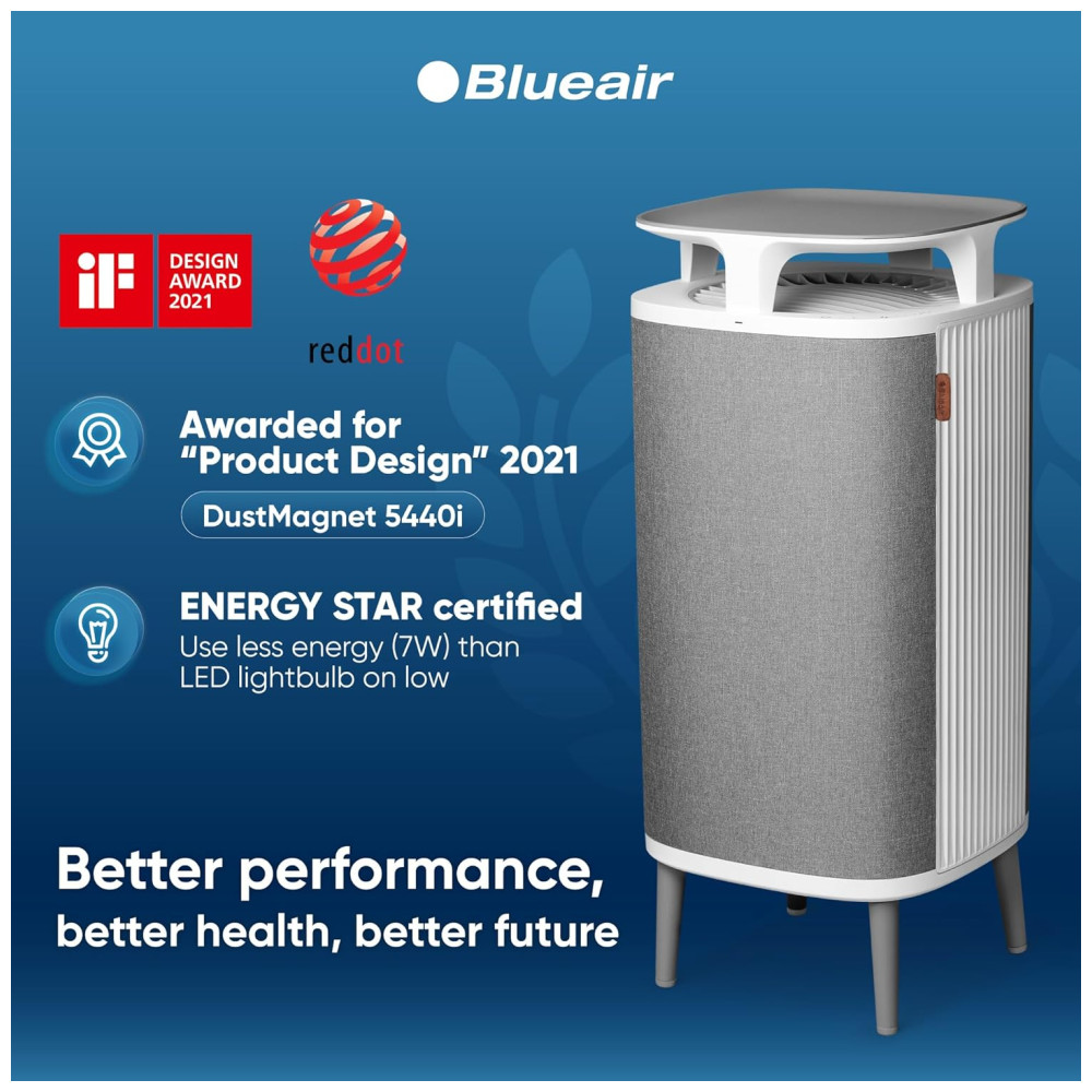 O purificador de ar Blueair DustMagnet é um dispositivo de dupla função que remove alérgenos e captura poeira do ar. Com a tecnologia patenteada DustMagnet, ele elimina até 99% da poeira transportada pelo ar antes que ela se assente em pisos e superfícies. Testado de forma independente, possui uma Taxa de Distribuição de Ar Limpo (CADR) de 230 para partículas finas de fumaça, 255 para pólen e 240 para poeira.