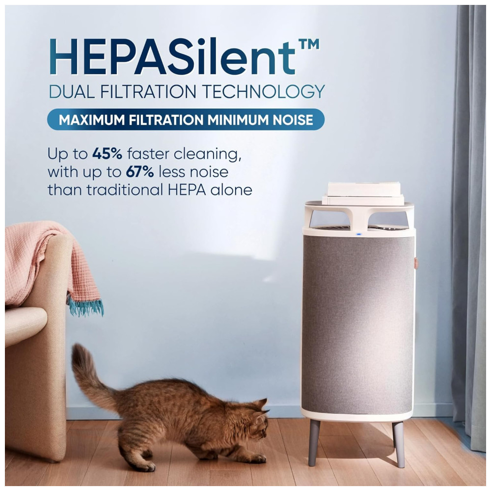 A exclusiva tecnologia HEPASilent da Blueair proporciona uma filtragem eficiente com ruído mínimo. Essa combinação de filtragem mecânica e carga eletrostática resulta em ar limpo até 45% mais rápido e com até 67% menos ruído do que a filtragem HEPA tradicional.