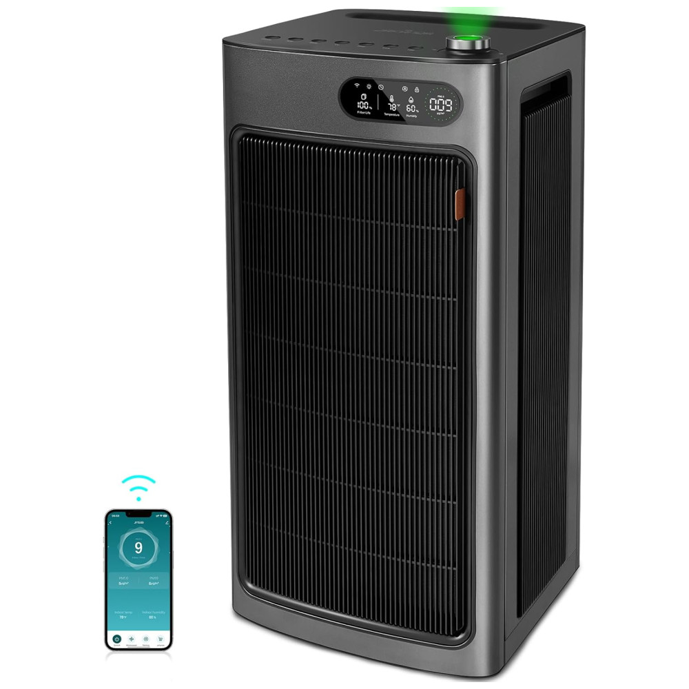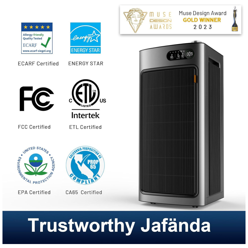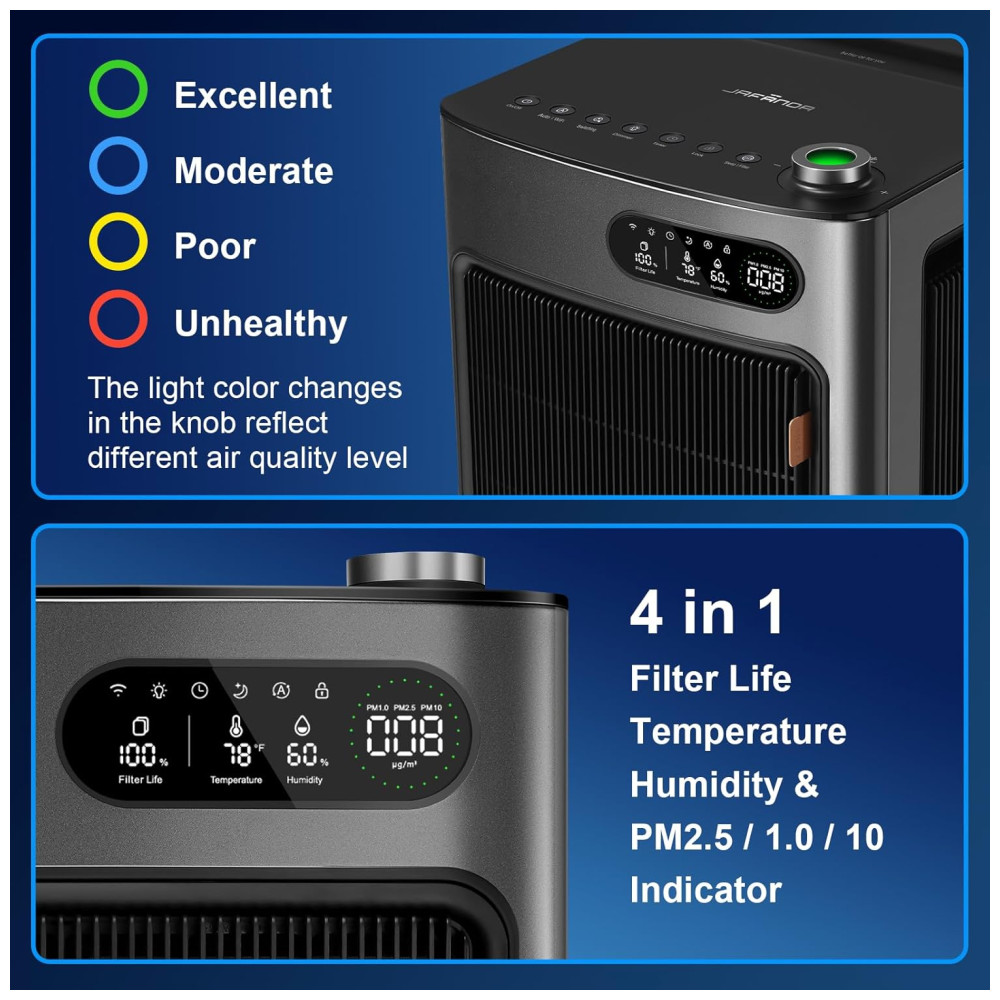 Purificador de Ar para Ambientes até 637m² com Controle por APP e Filtro de Carbono Duplo que Remove 99% de Poeira Pólen Fumaça Pêlos de Animais Alergias Mofo Odores e Compostos Orgânicos 110V 150W Jafnda Preto