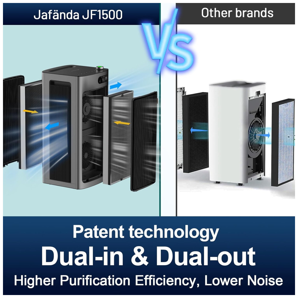 Transforme o seu ambiente com o JF1500, um purificador de ar que combina tecnologia avançada e eficiência. Equipado com dois motores potentes, ele garante uma purificação superior e operação silenciosa, proporcionando um ar mais limpo sem perturbar seu dia a dia.