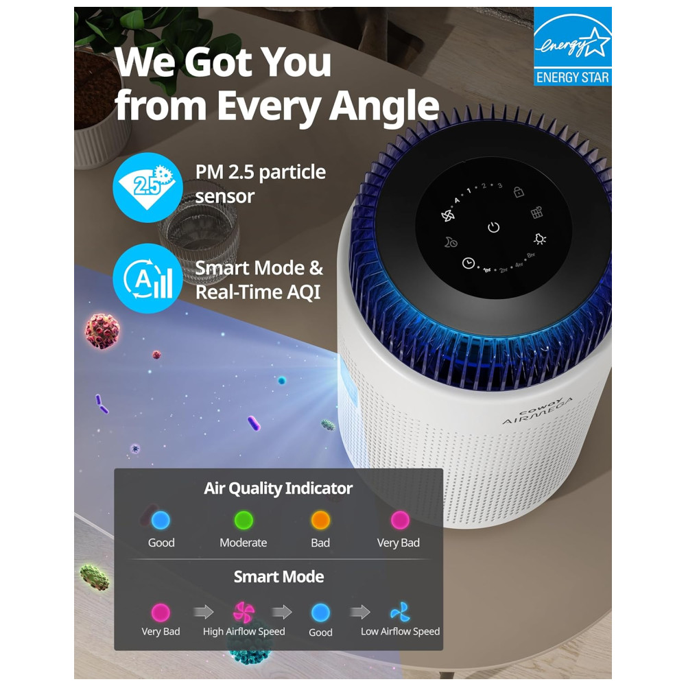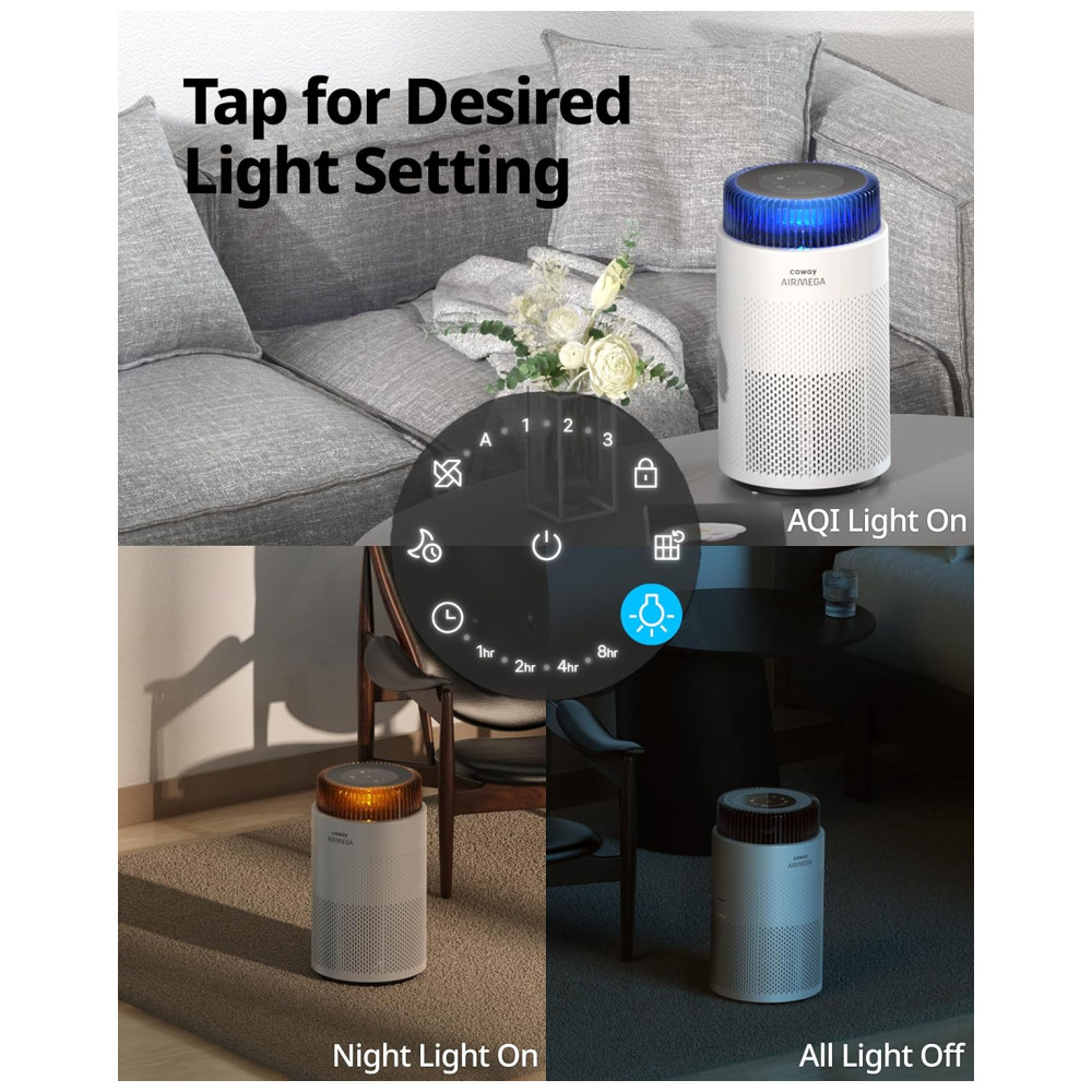 Purificador de Ar para Ambientes até 75m² com Filtro HEPA Temporizador Monitor de Qualidade Indicador de Filtro e Luz Noturna 110V 30W Coway AP-0823E Branco