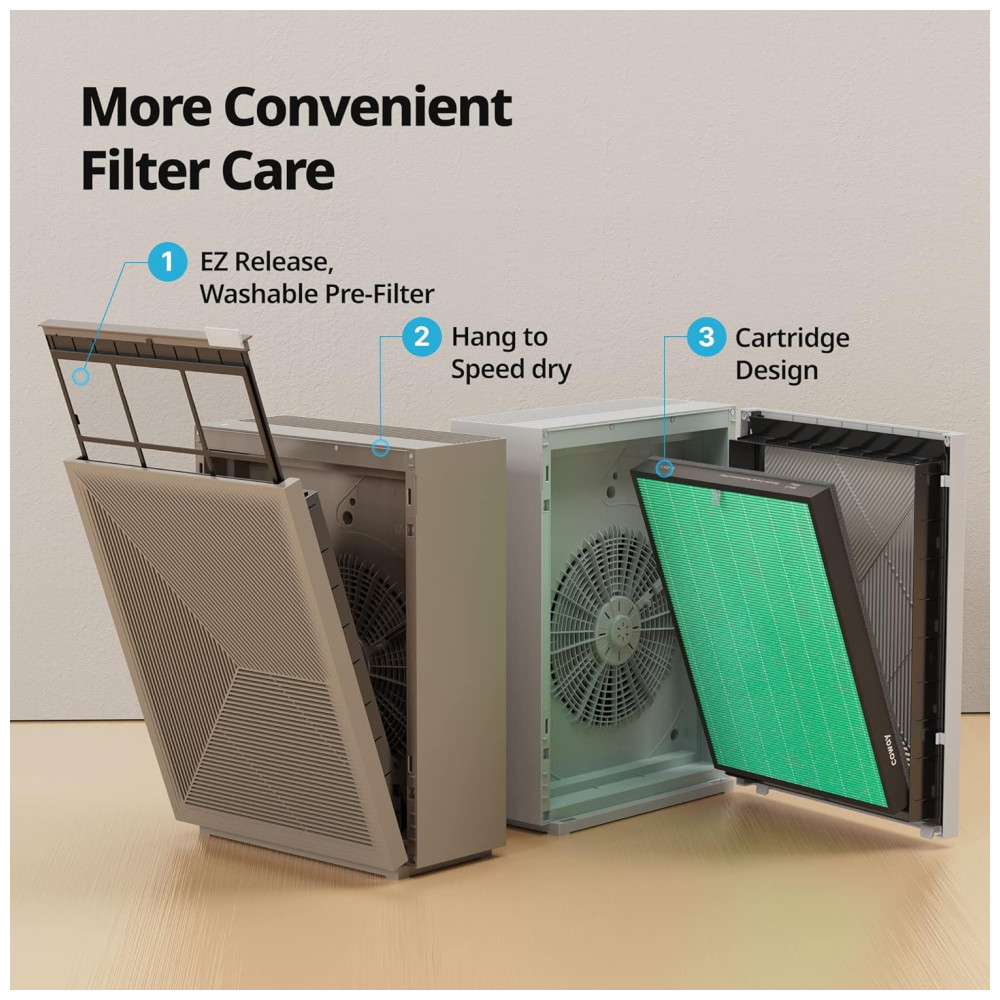 Seu design inovador inclui um cartucho portátil que facilita a remoção e a substituição dos filtros de maneira limpa e prática. O Coway Airmega 240 é silencioso, com níveis de ruído a partir de 20,6 dBA, e energeticamente eficiente, consumindo apenas 60 W de energia.