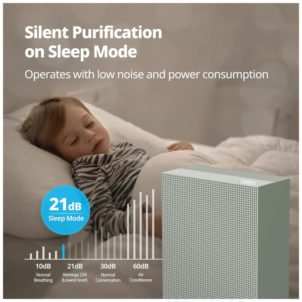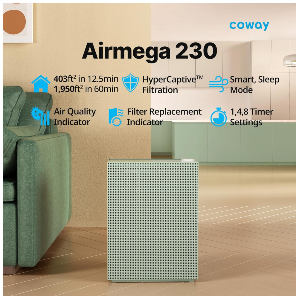 Purificador de Ar para Ambientes até 90m² com Sensor de Qualidade Modo Automático e 3 Estágios de Filtro 110V 60W Coway 230 Verde
