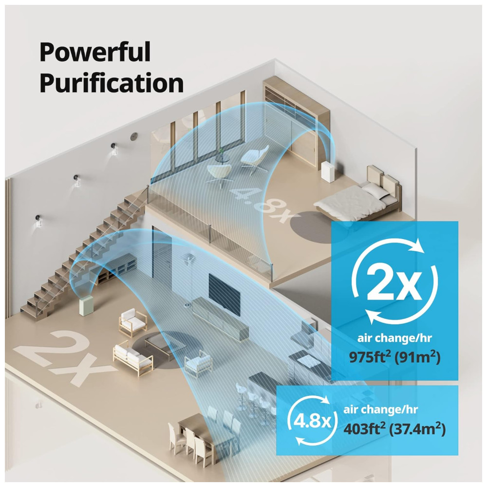 Cobertura Abrangente: Este purificador é projetado para limpar ambientes de até 37 m² em apenas 12,5 minutos, ou até 90 m² em 30 minutos, garantindo ar puro em um tempo recorde.