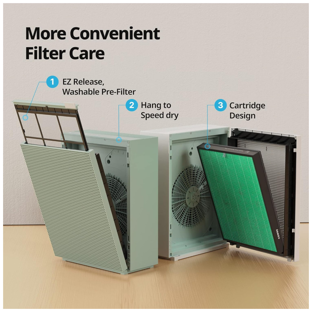 Sistema de Filtração HiperCaptiva: Equipado com uma combinação dinâmica de pré-filtro lavável, filtro de carbono ativo e Filtro Green True HEPA, ele remove eficazmente 99,999% das partículas de até 0,01 micrômetro, incluindo pólen, poluentes e alérgenos. Além disso, reduz 99% dos compostos orgânicos voláteis (COVs) e odores indesejados, proporcionando um ambiente mais saudável.