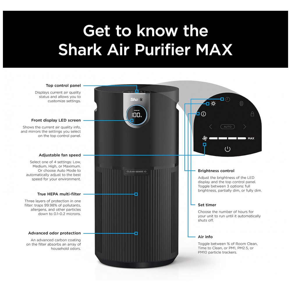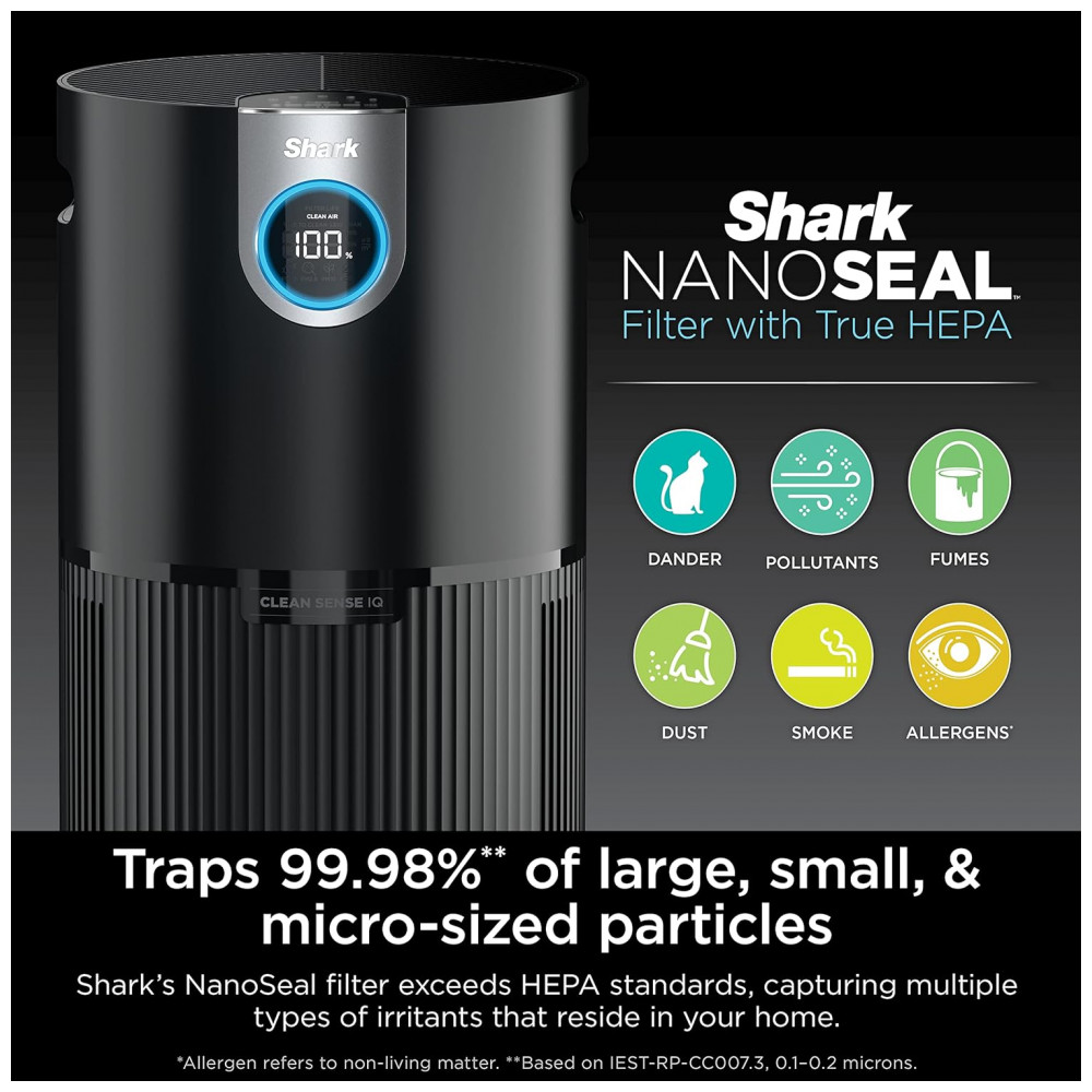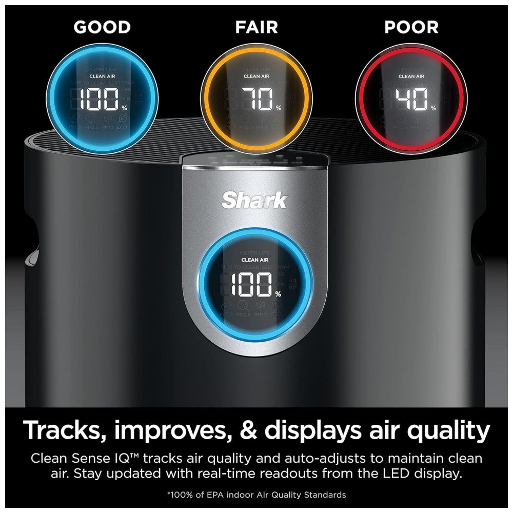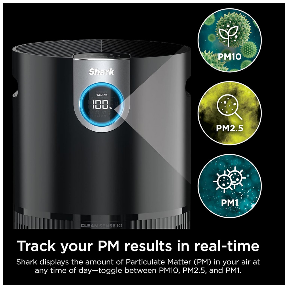 Purificador de Ar para Espaços até 111m2 com Filtro HEPA e Painel Digital Shark HP202 Clean Sense MAX Preto