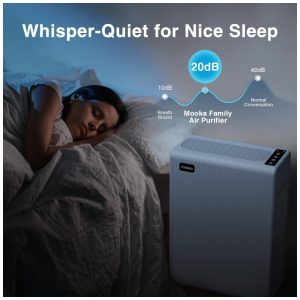 Purificador de Ar para Espaços até 160m2 com Filtro H13 HEPA para Animais de Estimação Fumaça Poeira de Pólen e Livre de Ozônio MOOKA FAMILY E300L Branco