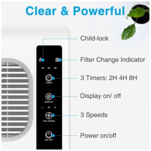FÁCIL DE USAR: Com níveis de ruído tão baixos quanto 20 dB, este purificador de ar HEPA é silencioso para um sono agradável. Você também pode desligar todas as luzes com o botão do display na hora de dormir. A configuração de bloqueio para crianças evita com eficiência operações de erro causadas por animais de estimação ou crianças. Além disso, o indicador de verificação de filtro informará quando for a hora de um filtro luz indicadora em branco.