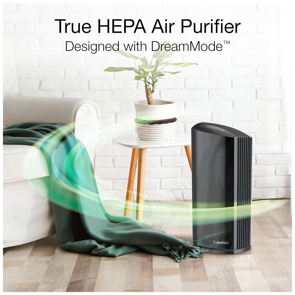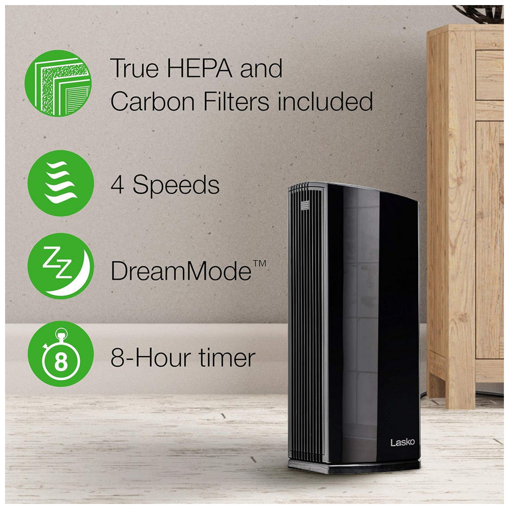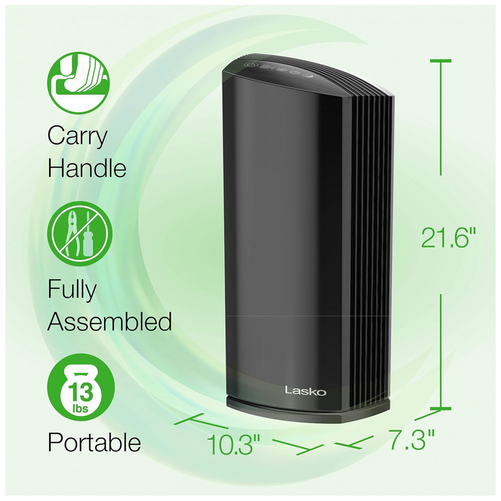 Purificador de Ar para Espaços até 21m2 com Temporizador e Filtração HEPA Remove 99 de Fumaça Odores Pelos Partículas Pequenas Pólen e Mofo Lasko LP450 Preto