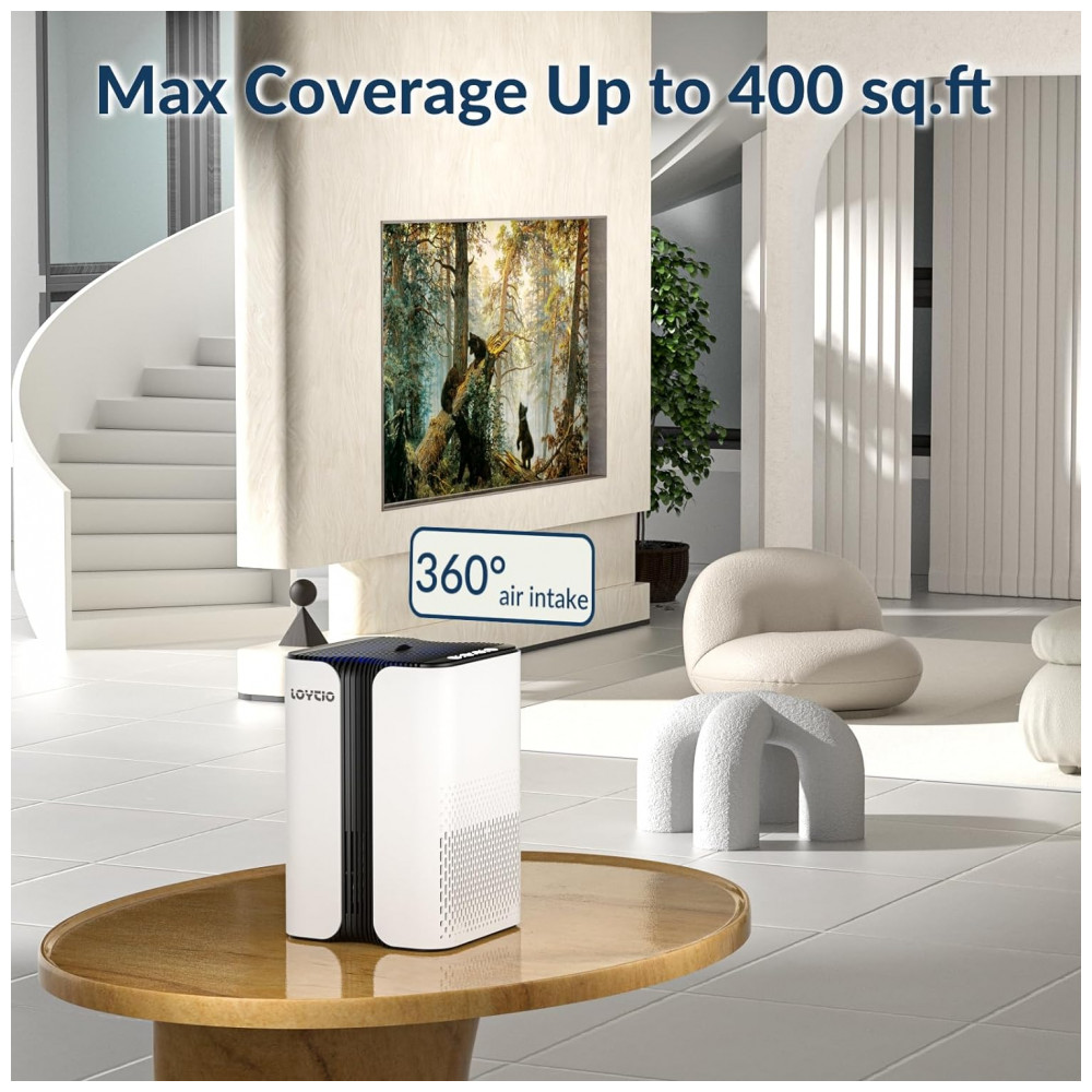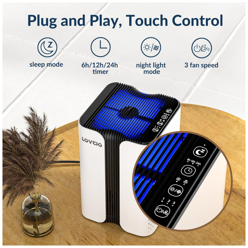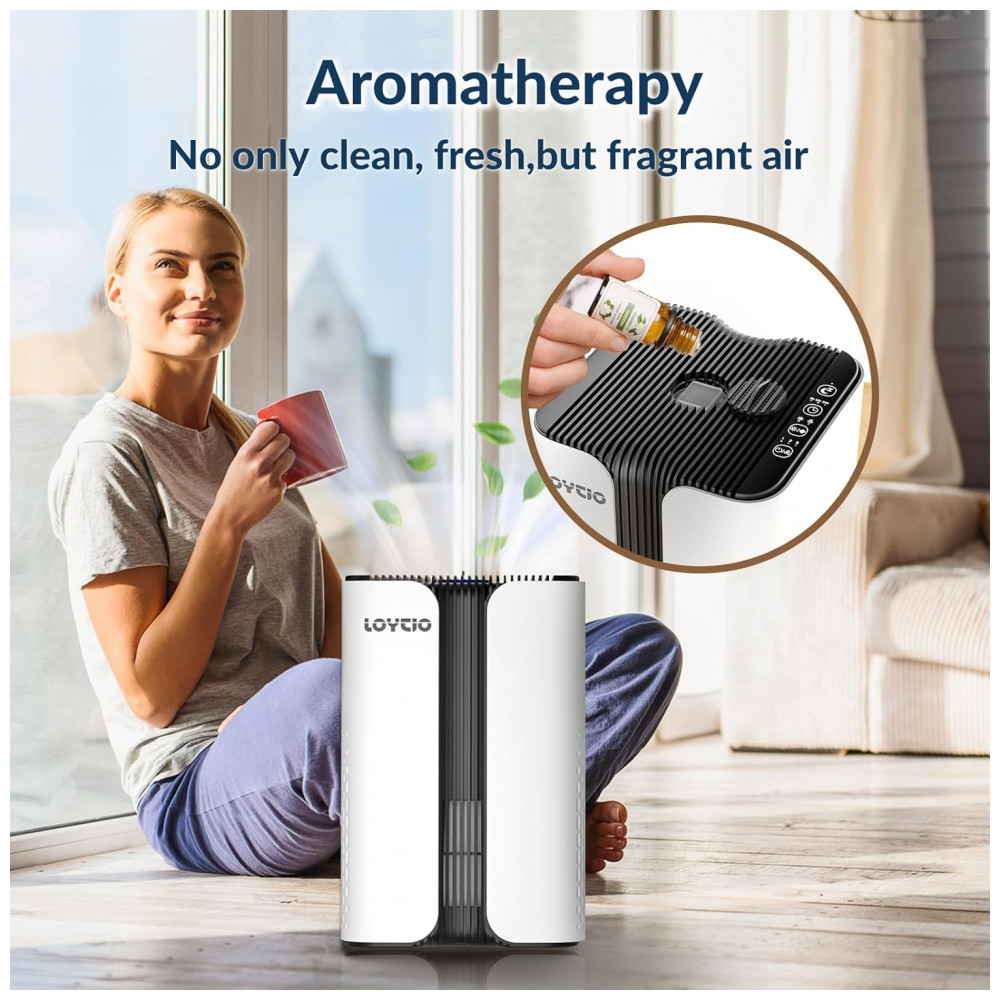 Purificador de Ar para Espaços até 37m2 com Modo de Sono de 24db Luz Noturna 3 Temporizadores e Aromaterapia LOYTIO KJ7 Preto e Branco