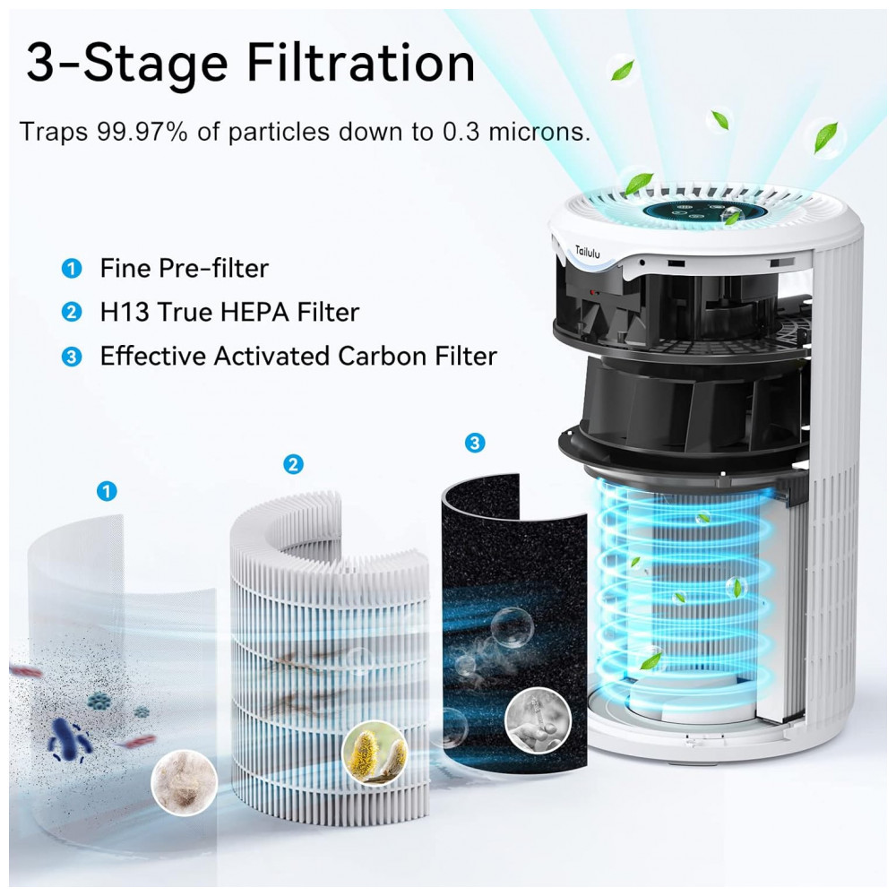 Alívio instantâneo de ar sujo Equipado com um potente motor sem lâminas para desempenho eficiente de limpeza de ar e economia de energia, os purificadores de ar Tailulu para grandes espaços de filtro de sala de até 124 m em 1 hora, 20 m em 10 minutos. Economize mais de 20 nas contas de energia. Design de duto de ar de 360, reduzindo a perda de ar em 34 e aumentando a entrada de ar em 48 com cobertura total.