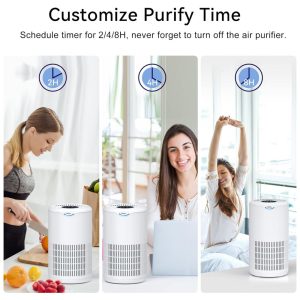 Durma melhor, respire melhor Ativa o modo de suspensão, os purificadores de ar para quarto funcionam a 29dB mais silenciosos do que um sussurro. Deixe você esquecer que está lá enquanto dorme ou trabalha. A luz noturna suave opcional deixa sua mente à vontade e faz você dormir mais profundamente. Personalize o temporizador do purificador de ambiente 2H, 4H, 8H, acorde com ar fresco todos os dias