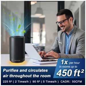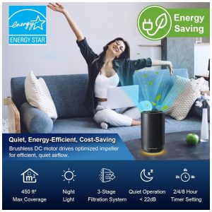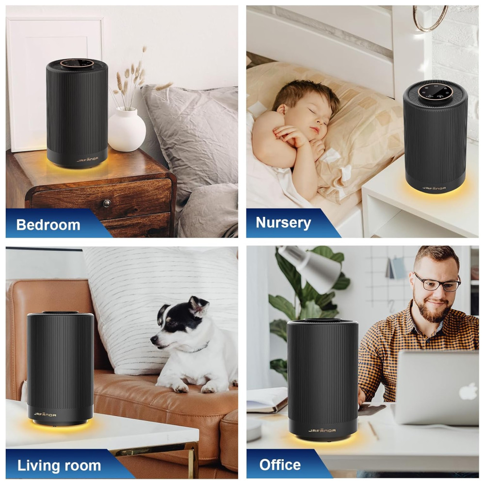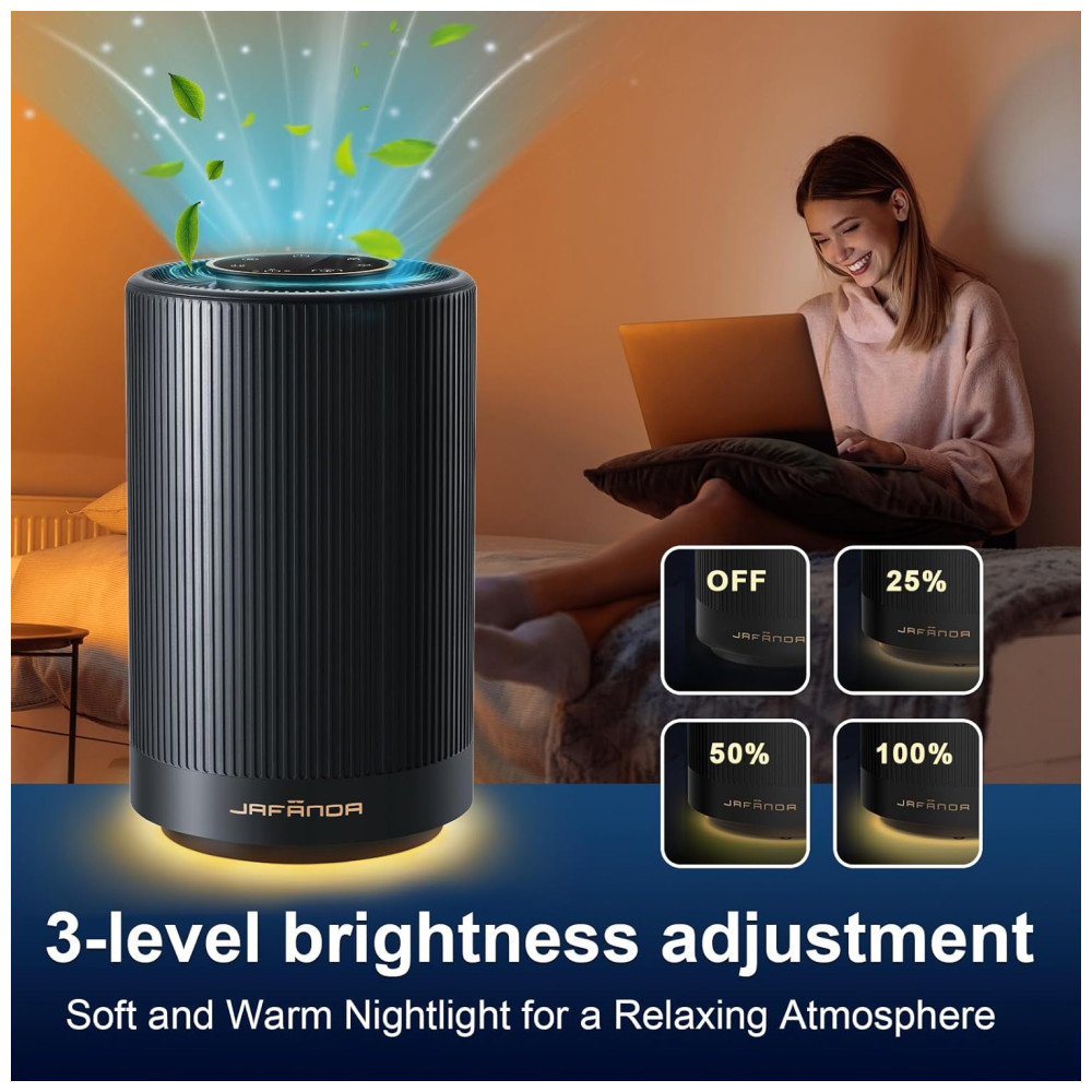 Purificador de Ar Portátil para Ambientes até 40m² com Filtro H13 HEPA Luz Noturna e 3 Velocidades 110V 10W Jafnda JF100 Preto