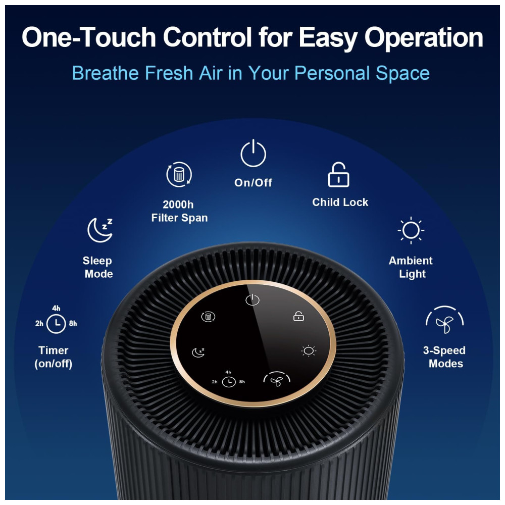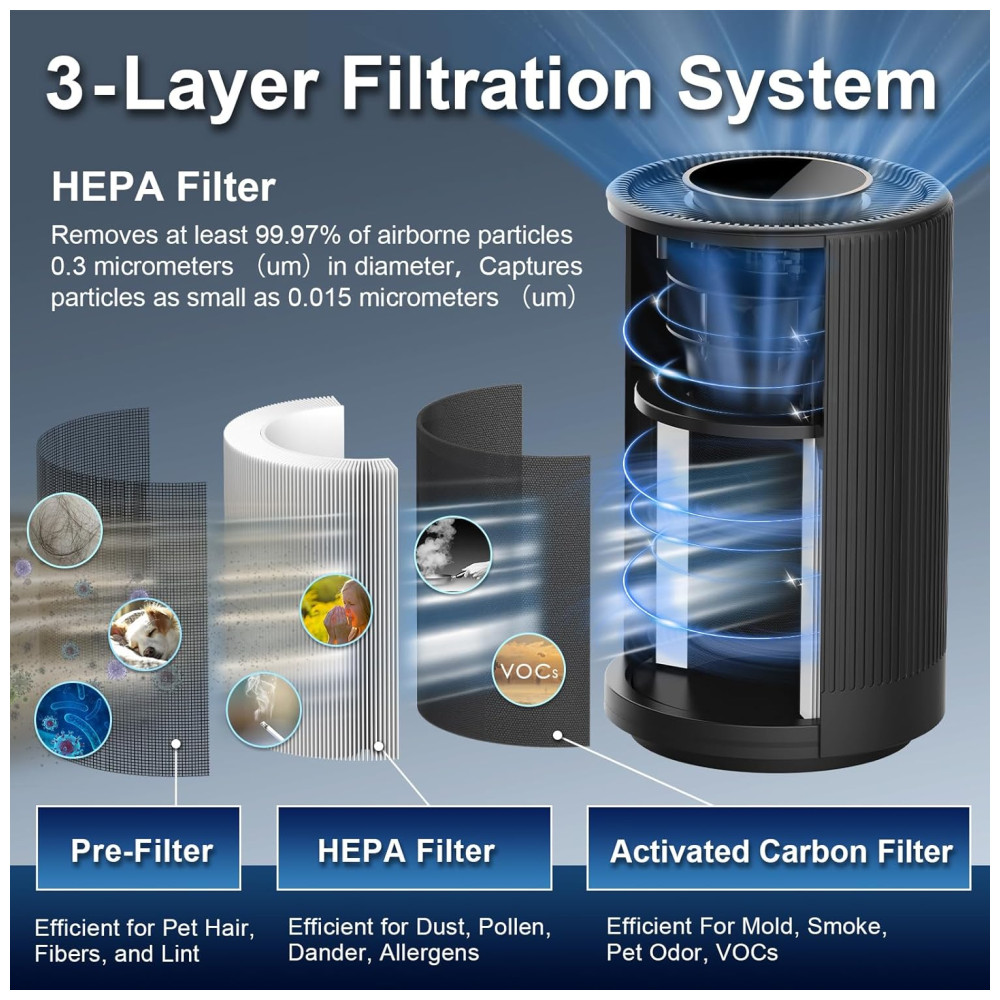 Este purificador de ar é ideal para ambientes de até 40m2. Equipado com um filtro de ar de carvão ativado de alta tecnologia, ele utiliza um sistema de filtragem em 3 estágios para capturar eficientemente poluentes e odores.