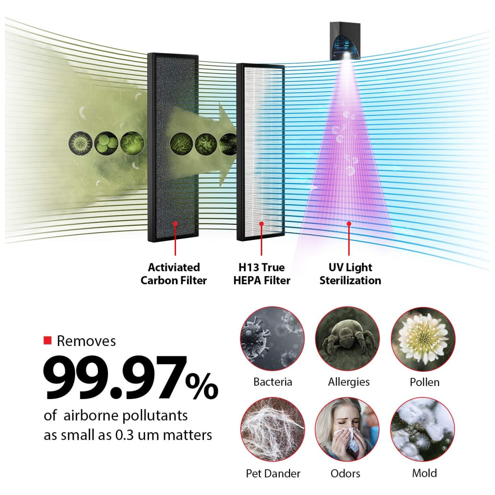 Purificador de Ar Toshiba Smart WiFi HEPA 3 em 1 Até 20m Preto 110V