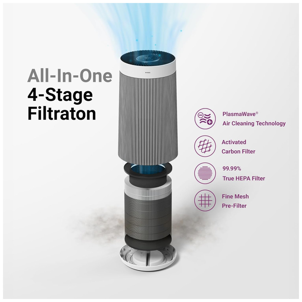 O Purificador de Ar Winix T810 apresenta um sistema de purificação de ar 4 em 1 completo, capaz de remover 99,99% das partículas em suspensão no ar, tão pequenas quanto 0,01 microns. A tecnologia PlasmaWave da Winix pode ajudar a reduzir a presença de poluentes, alérgenos e impurezas no ar. O sensor inteligente integrado detecta e monitora a qualidade do ar no seu ambiente, fornecendo uma representação visual da sua qualidade atual. No Modo Automático, o purificador ajusta automaticamente a velocidade do ventilador para garantir uma limpeza eficiente e econômica. Ative o modo de Sono para operação silenciosa e eficiente em termos energéticos. A função WiFi permite que você conecte seu purificador de ar ao aplicativo inteligente Winix, monitorando a qualidade do ar em sua casa, controlando o purificador de ar e acompanhando a vida útil do filtro. Além disso, limpa ambientes de até 183m² em 1 hora, 91m² em 30 minutos, 61m² em 20 minutos, 46m² em 15 minutos. Controle e monitore sua unidade a qualquer momento e de qualquer lugar, acessando instantaneamente seu purificador com o aplicativo inteligente Winix por meio da conveniente função WiFi. Captura 99,99% dos alérgenos em suspensão, incluindo pólen, poeira, fumaça e pelos de animais, tão pequenos quanto 0,01 microns. A primeira linha de defesa contra as maiores partículas em suspensão encontradas em ambientes fechados. Reduz COVs e odores domésticos de cozinha, animais de estimação e fumaça. Projetado para capturar partículas em suspensão encontradas em ambientes fechados, o que também ajuda a prolongar a vida útil do Filtro True HEPA. O indicador visual exibe a qualidade do ar em tempo real no ambiente com luzes LED. O sensor de qualidade do ar integrado mede e ajusta a velocidade do ventilador em tempo real. Quase silencioso na velocidade mais baixa. Quando os filtros precisam ser substituídos, o LED do Indicador de Substituição do Filtro se acenderá.