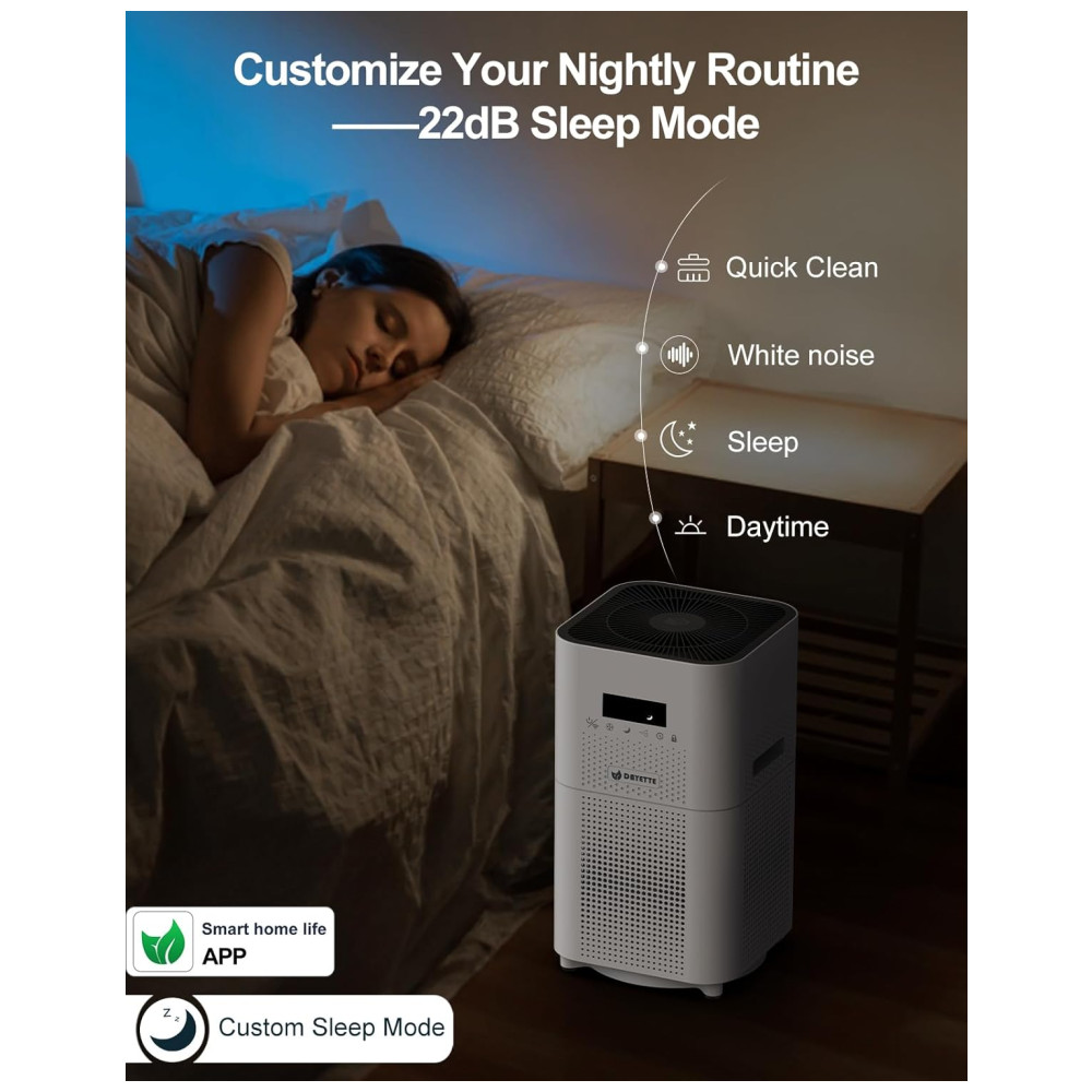Purificadores de ar inteligentes WIFI Dayette para ambientes amplos de até 3.000 pés quadrados. Controle por aplicativo e Alexa DAYETTE.