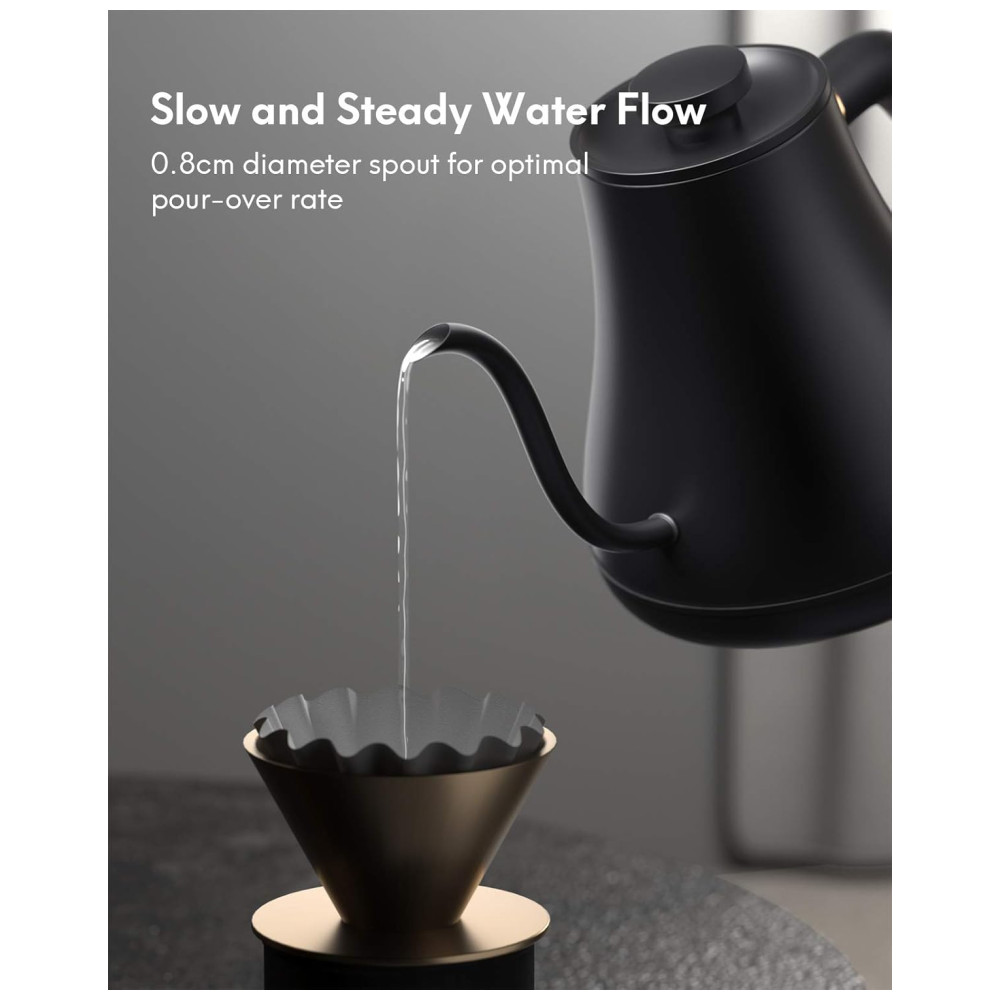 Engenharia requintada A chaleira elétrica tem um bico longo de pescoço de ganso para garantir um derramamento preciso e fluxo de água constante. Uma estrutura corporal equilibrada e uma alça resistente ao calor proporcionam um tempo de serviço mais confortável e mais longo. Não há parafuso na caixa da chaleira que não cause problemas de ferrugem, mesmo após anos de uso.