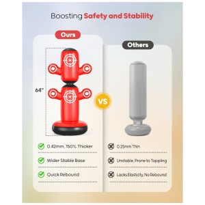 Estabilidade Aprimorada: PVC premium de 0,42 mm reforçado previne vazamentos e rasgos. Base ampliada e alargada garante maior estabilidade evitando tombamentos. Responde rapidamente para mais flexibilidade e suporta brincadeiras e treinos vigorosos.
