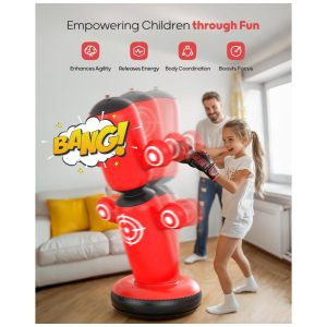 QPAU Bolsa de Pancadas Inflável 360° Rotativa para Crianças com Luvas e Bomba de Ar – Brinquedo de Boxe Vermelho