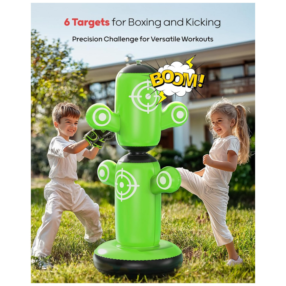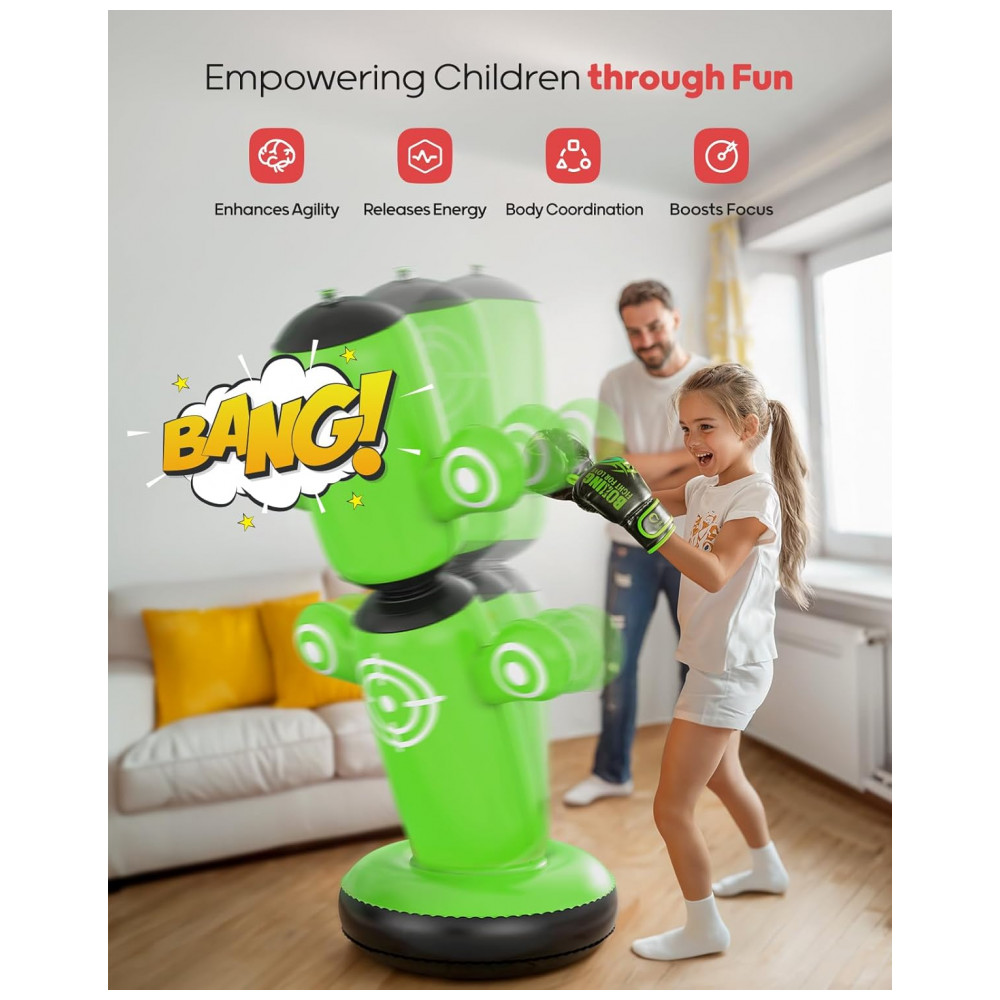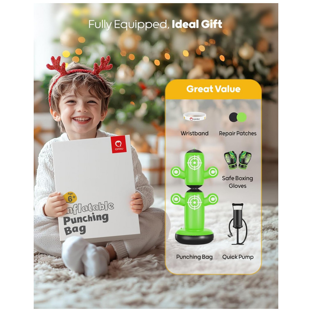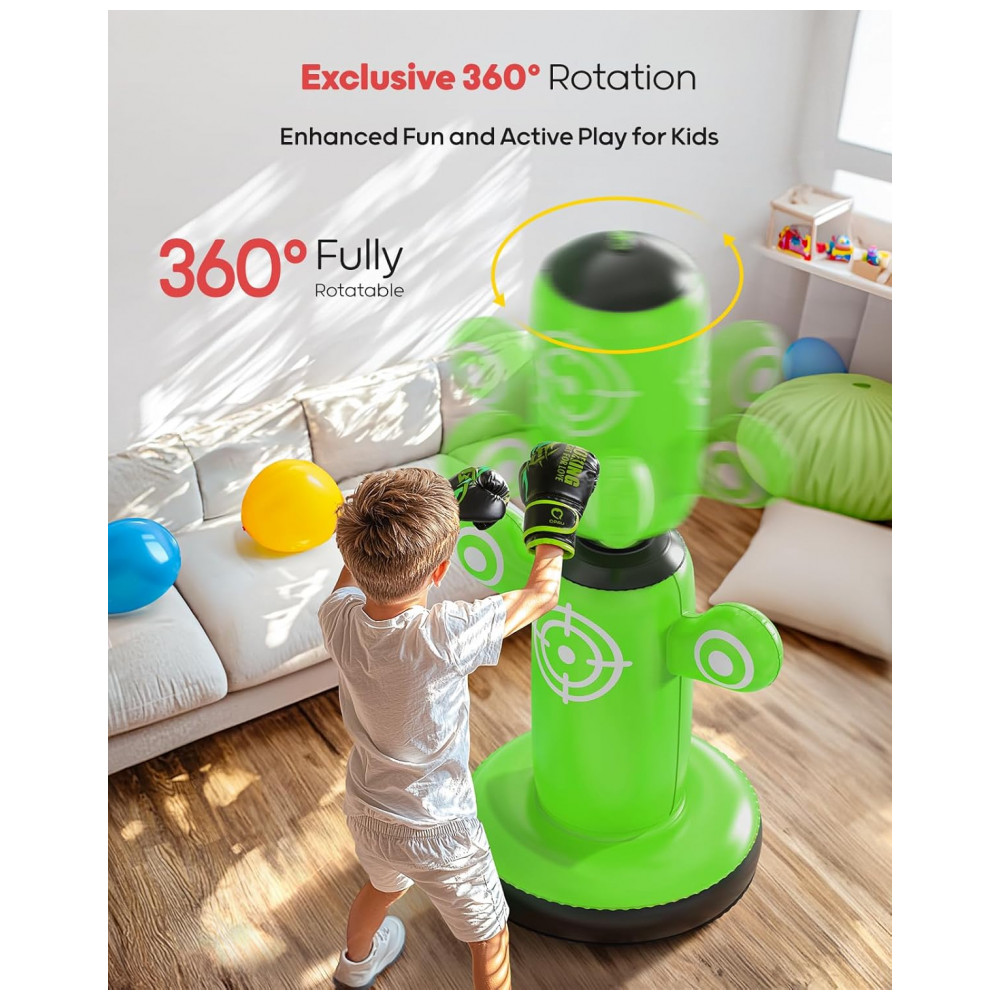 QPAU Saco de Pancadas Inflável 360° Rotativo para Crianças com Luvas e Bomba de Mão – Verde