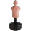 A superfície apresenta múltiplos alvos distribuídos na frente e nas laterais, permitindo golpes de soco e chute em diferentes alturas e direções, favorecendo coordenação motora e foco visual. A estrutura é fabricada em PVC com espessura aproximada de 0,42 mm e base alargada, projetada para ser preenchida com água, garantindo estabilidade e retorno rápido após os impactos.