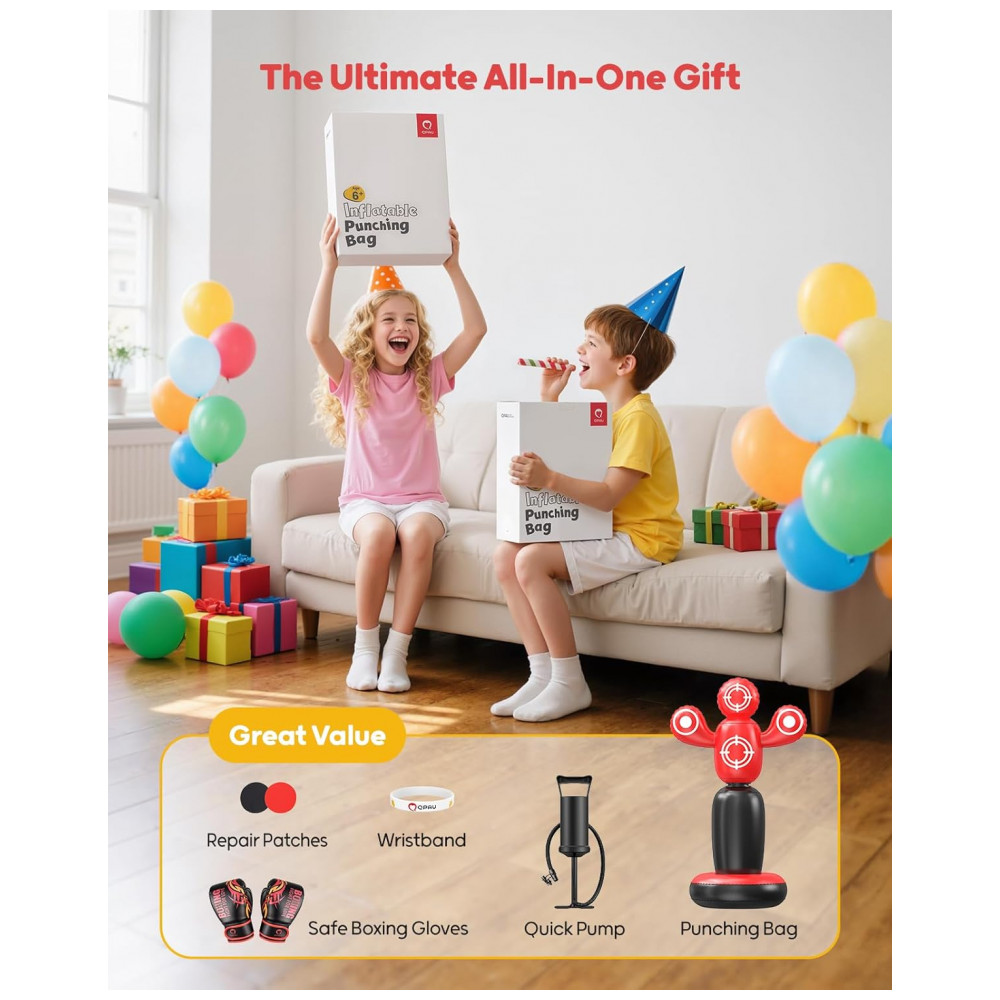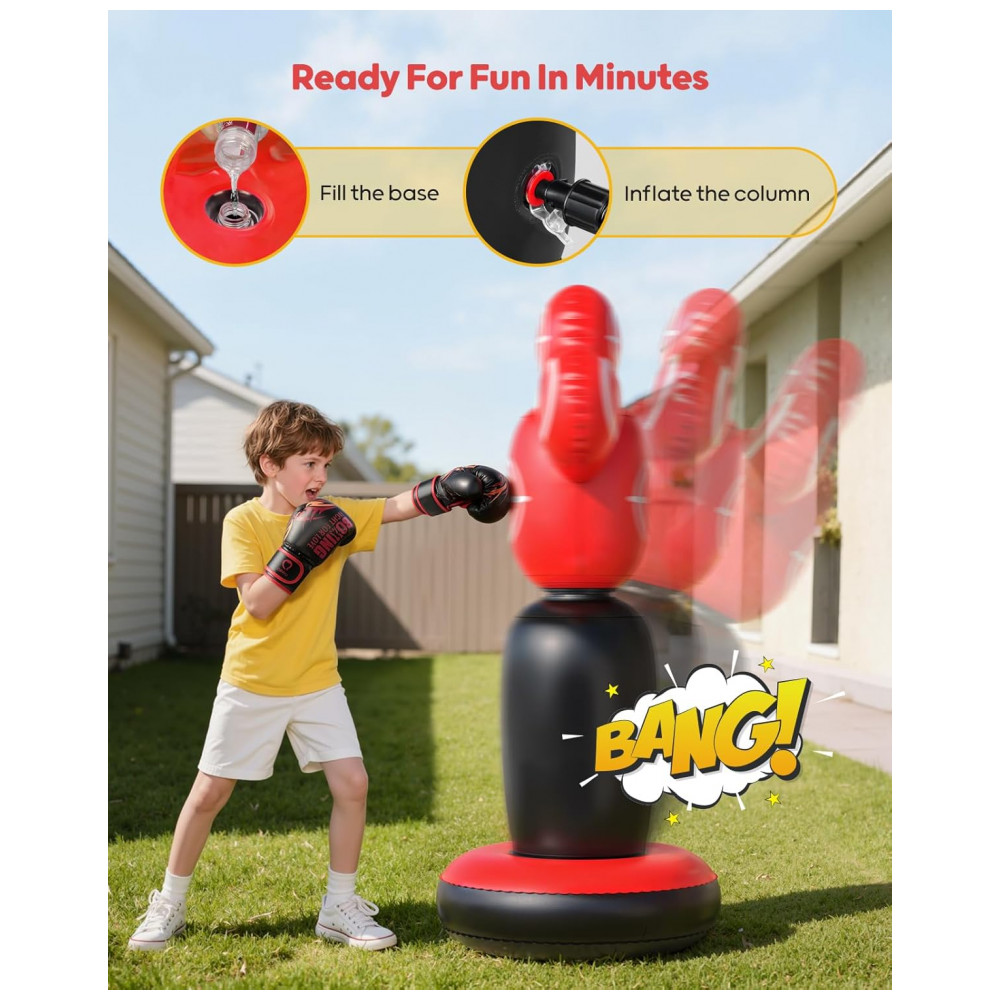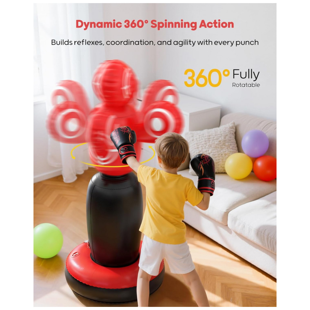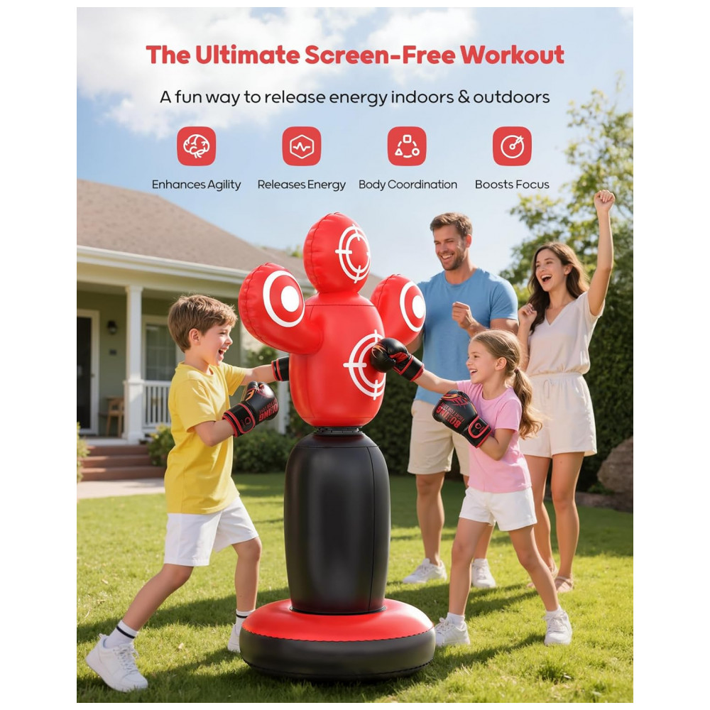 QPAU Saco de Pancadas Inflável para Crianças 163cm com 4 Alvos e Luvas de Boxe – Treinamento de Karate e Taekwondo
