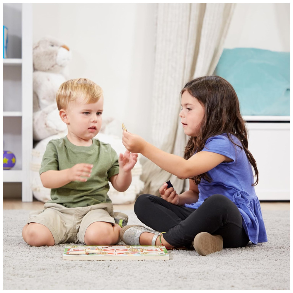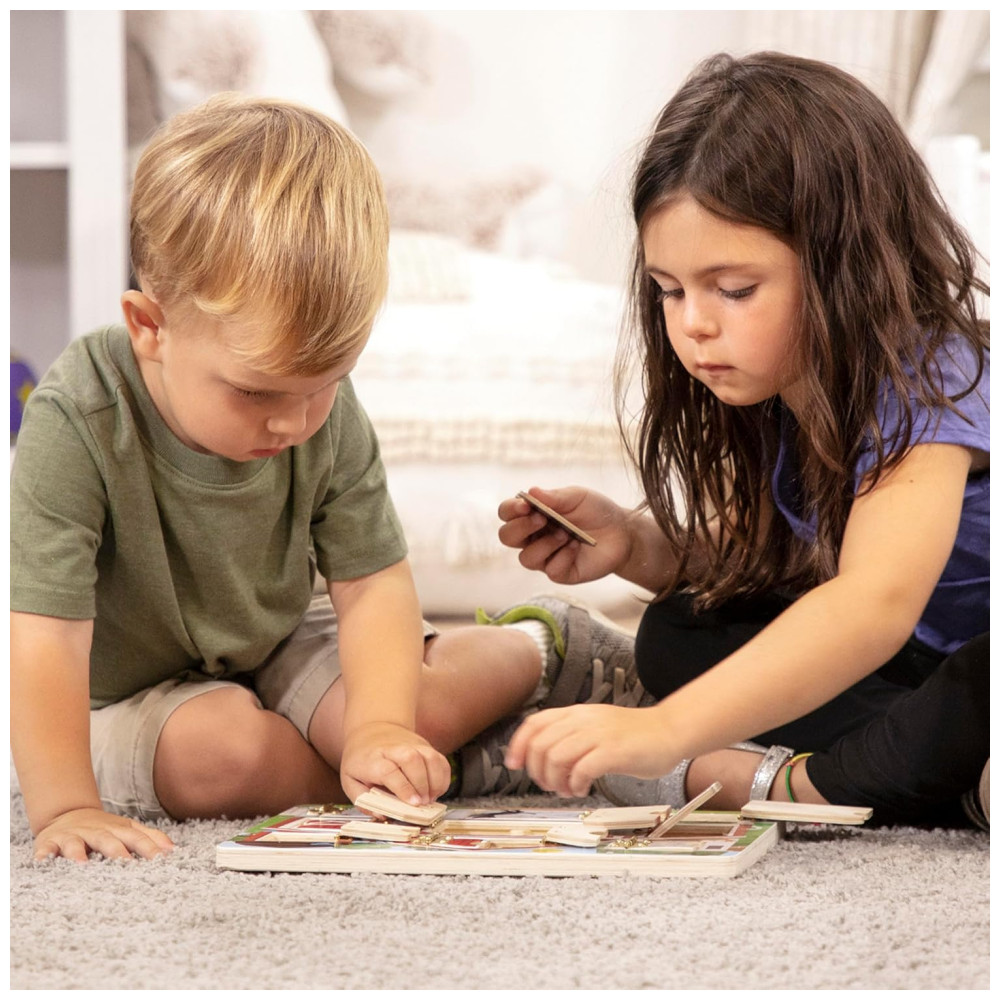 A empresa tem mais de 25 anos de experiência em fornecer produtos inovadores para crianças. Este tabuleiro de quebra cabeça magnético com portas articuladas é uma maneira divertida de manter as crianças ocupadas e se divertindo na fazenda por horas.