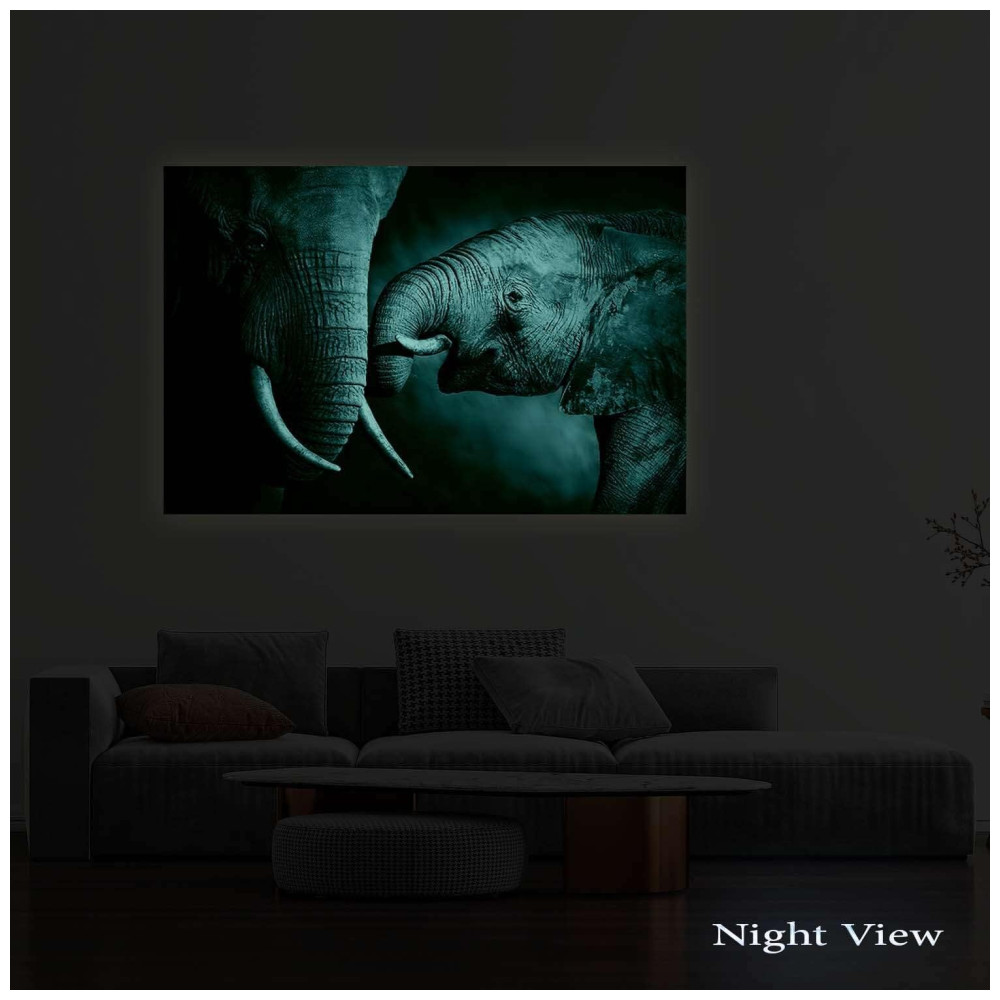 As obras de arte com tema de animais destacam uma personalidade criativa Especialmente, esta tela de arte de parede da Mãe Elefante é um criador de tendências em sua categoria com uma mensagem poderosa VOCÊ também descobrirá o recurso Dual View da pintura Ele brilha suavemente no escuro por até 8 horas
