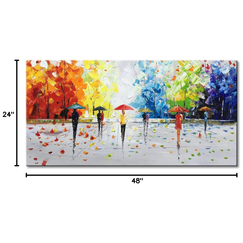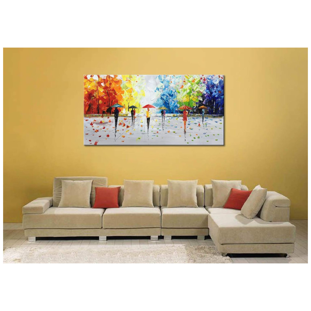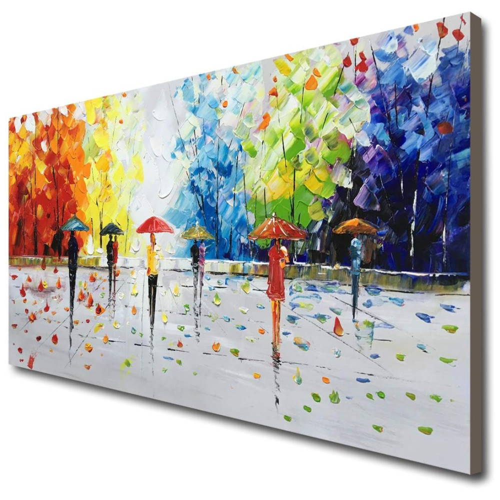 Quadro Decorativo Pintado à Mão Abstrata Chuva Colorida 121 x WINPEAK ART Azul