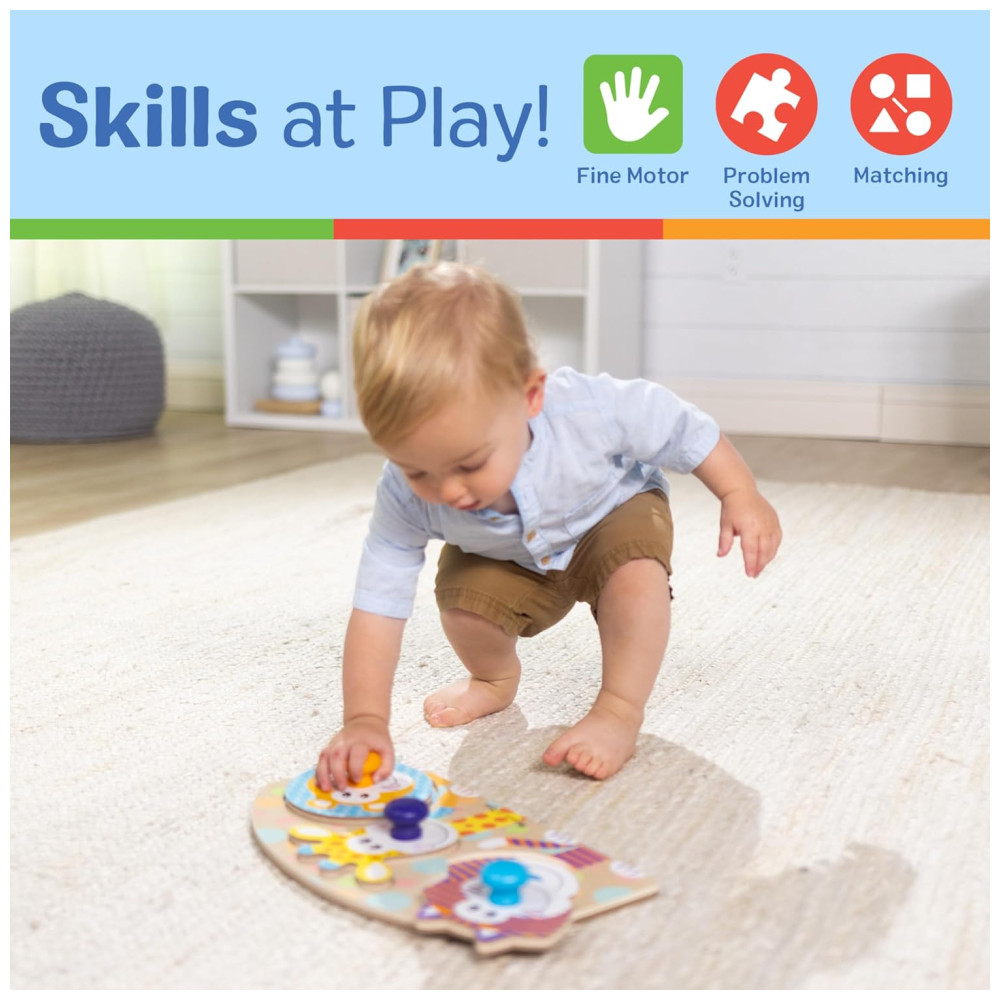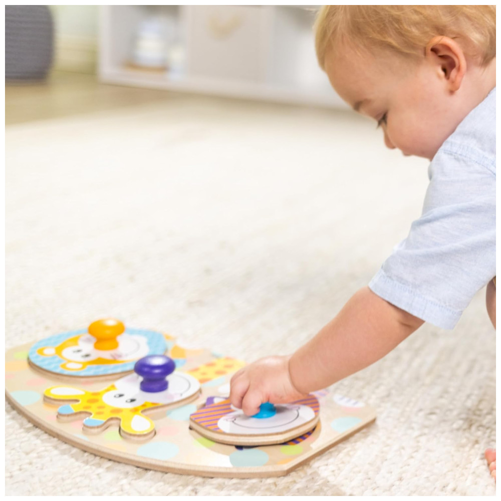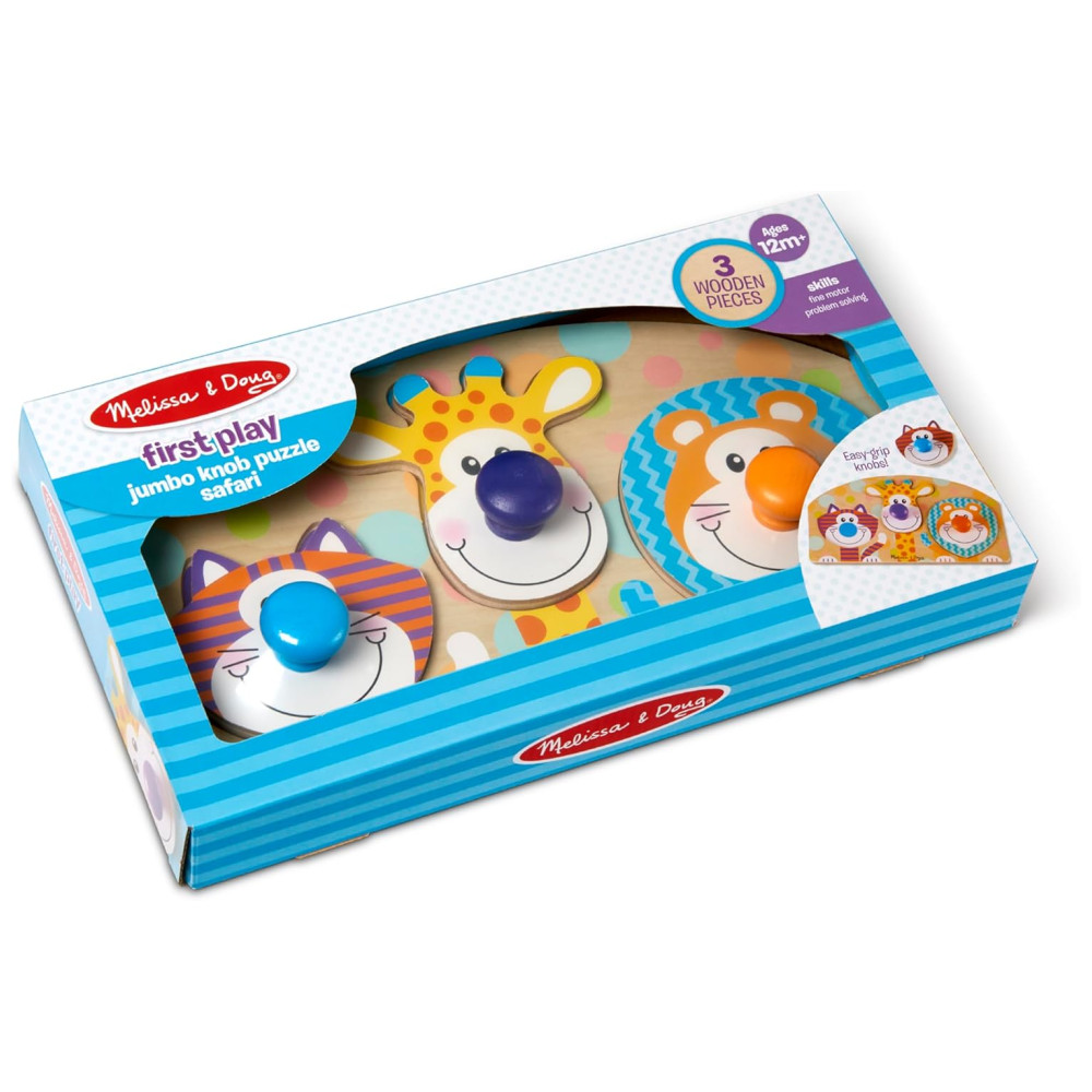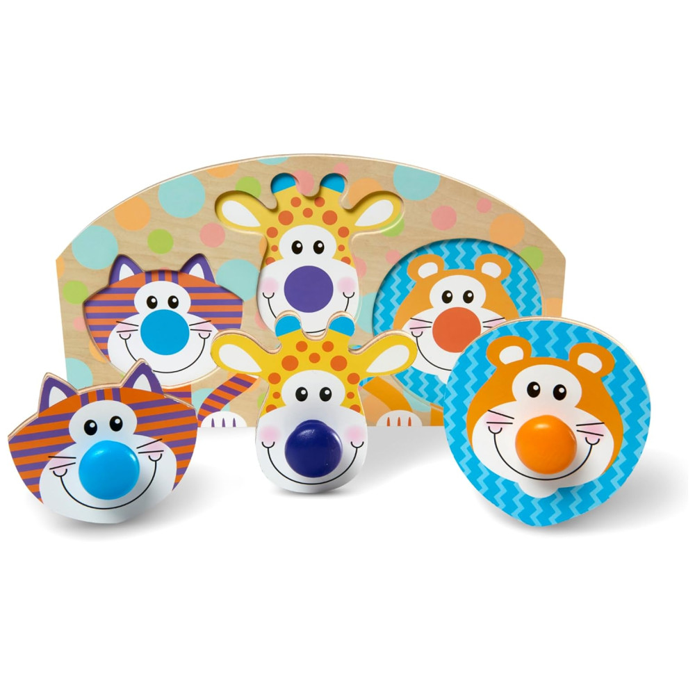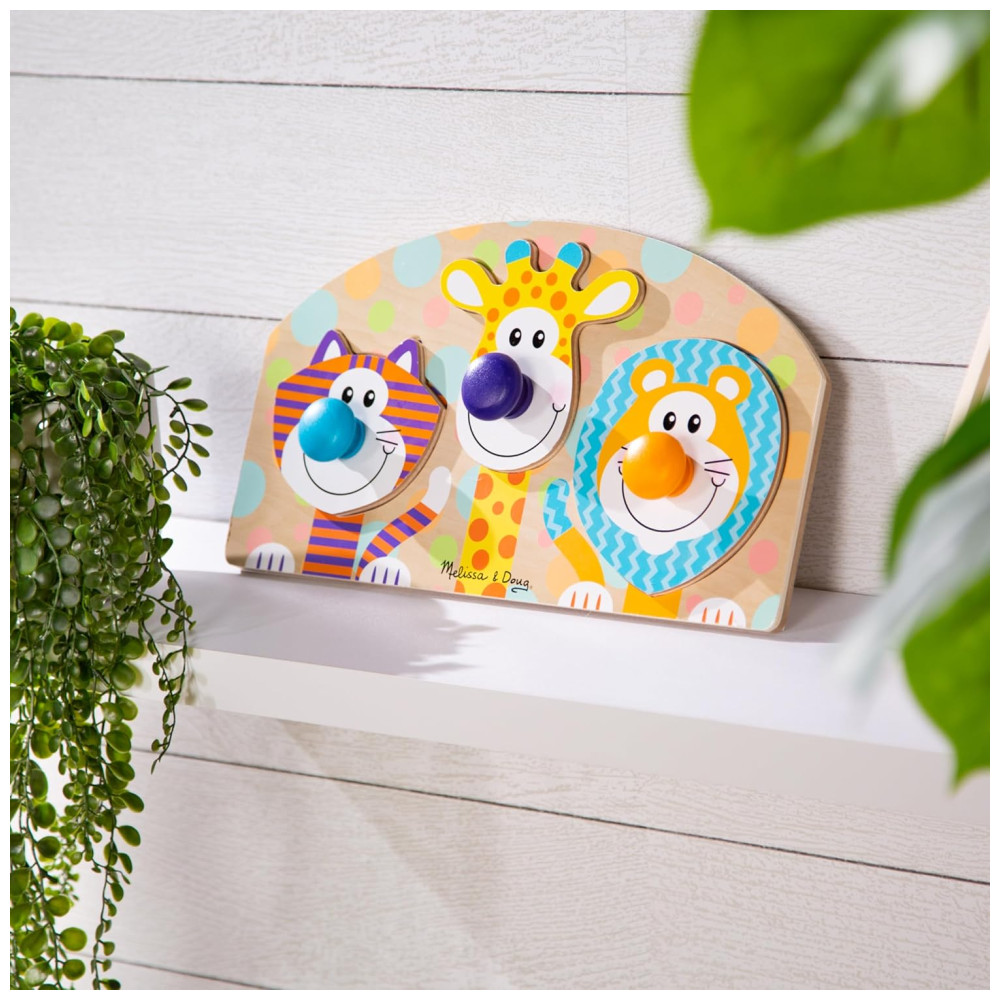 Quebra Cabeça de Madeira para Bebês Tema Animais da Selva com 3 Peças e Grandes Botões Melissa & Doug