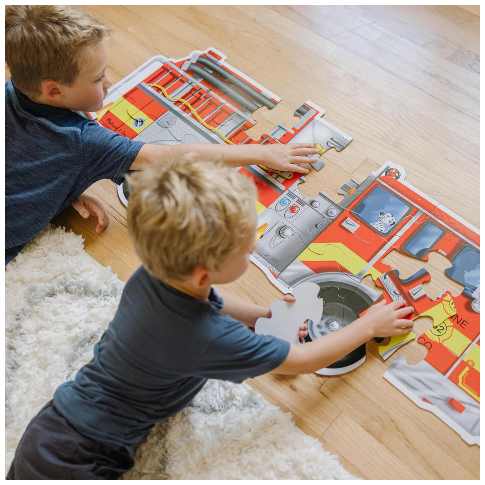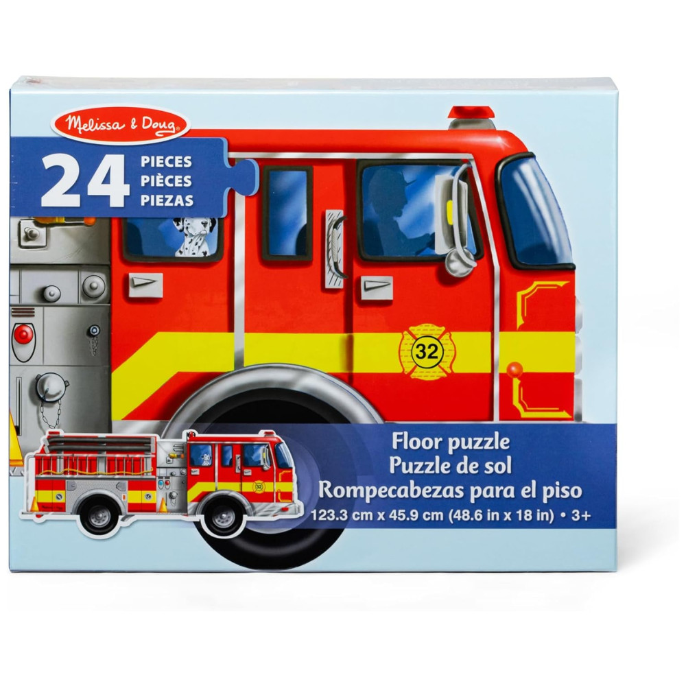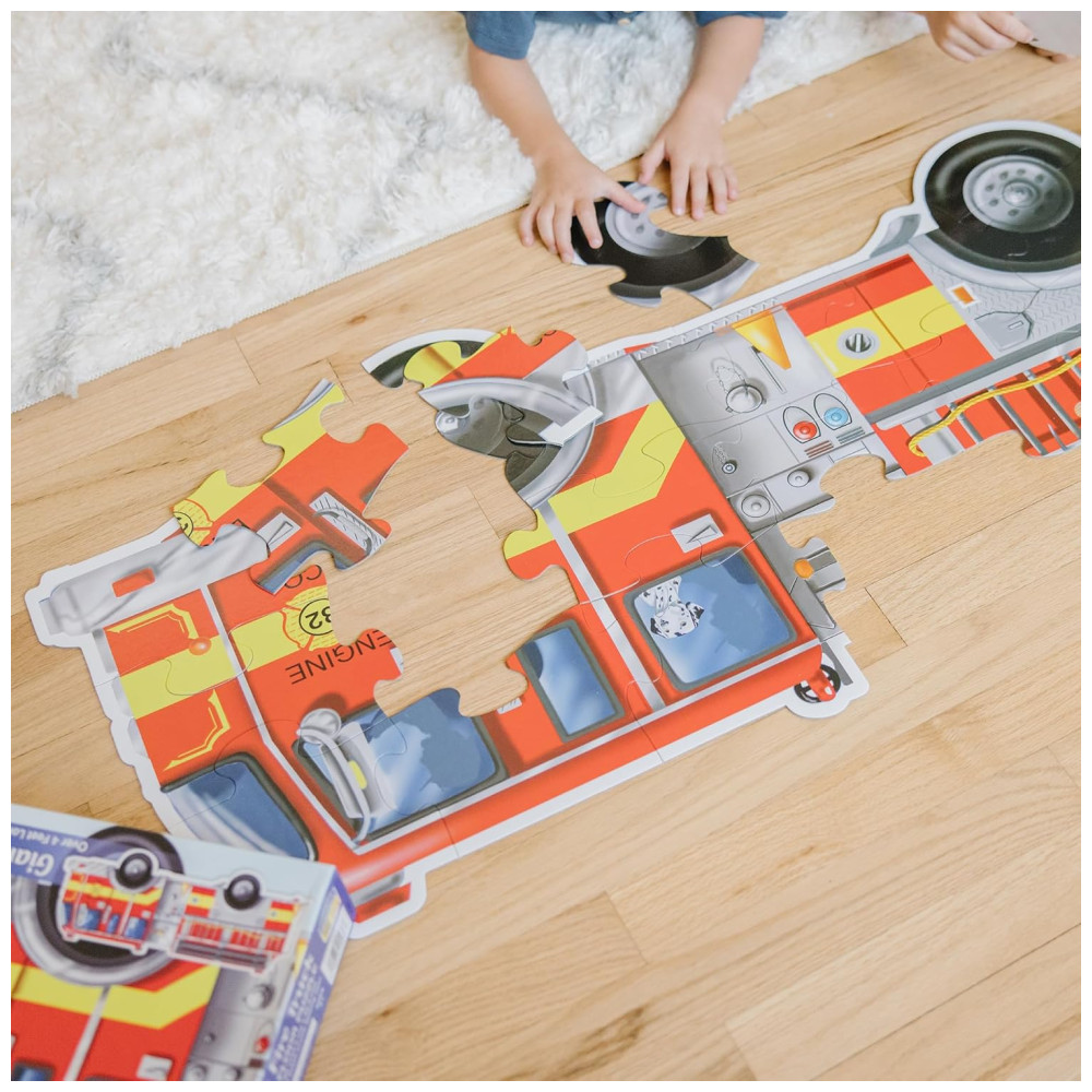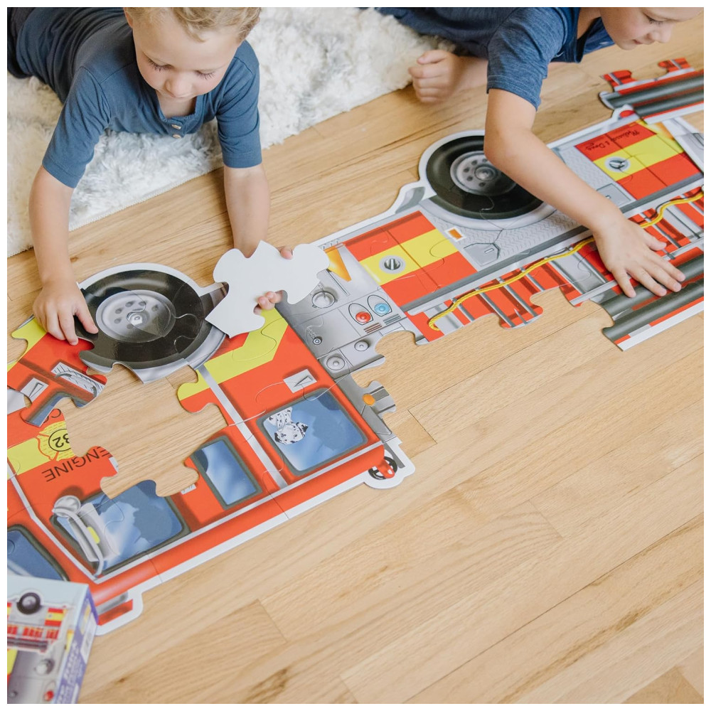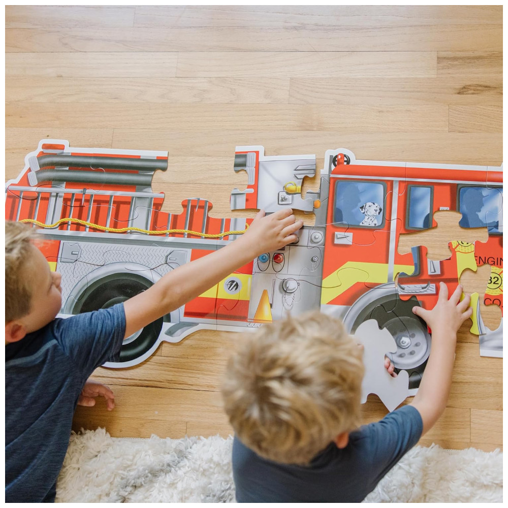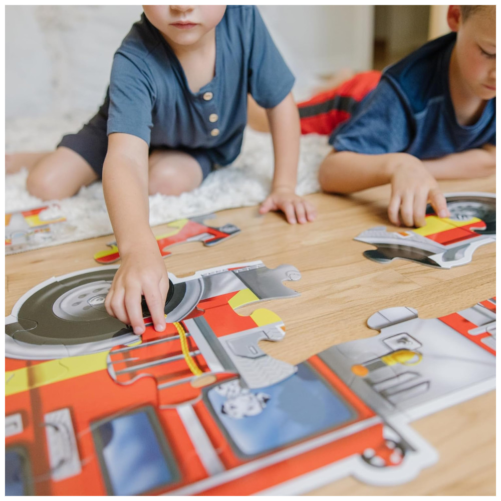Quebra Cabeça Infantil de Chão Tema Caminhão de Bombeiros com 24 Peças para Crianças Acima de 3 Anos Melissa Doug Vermelho