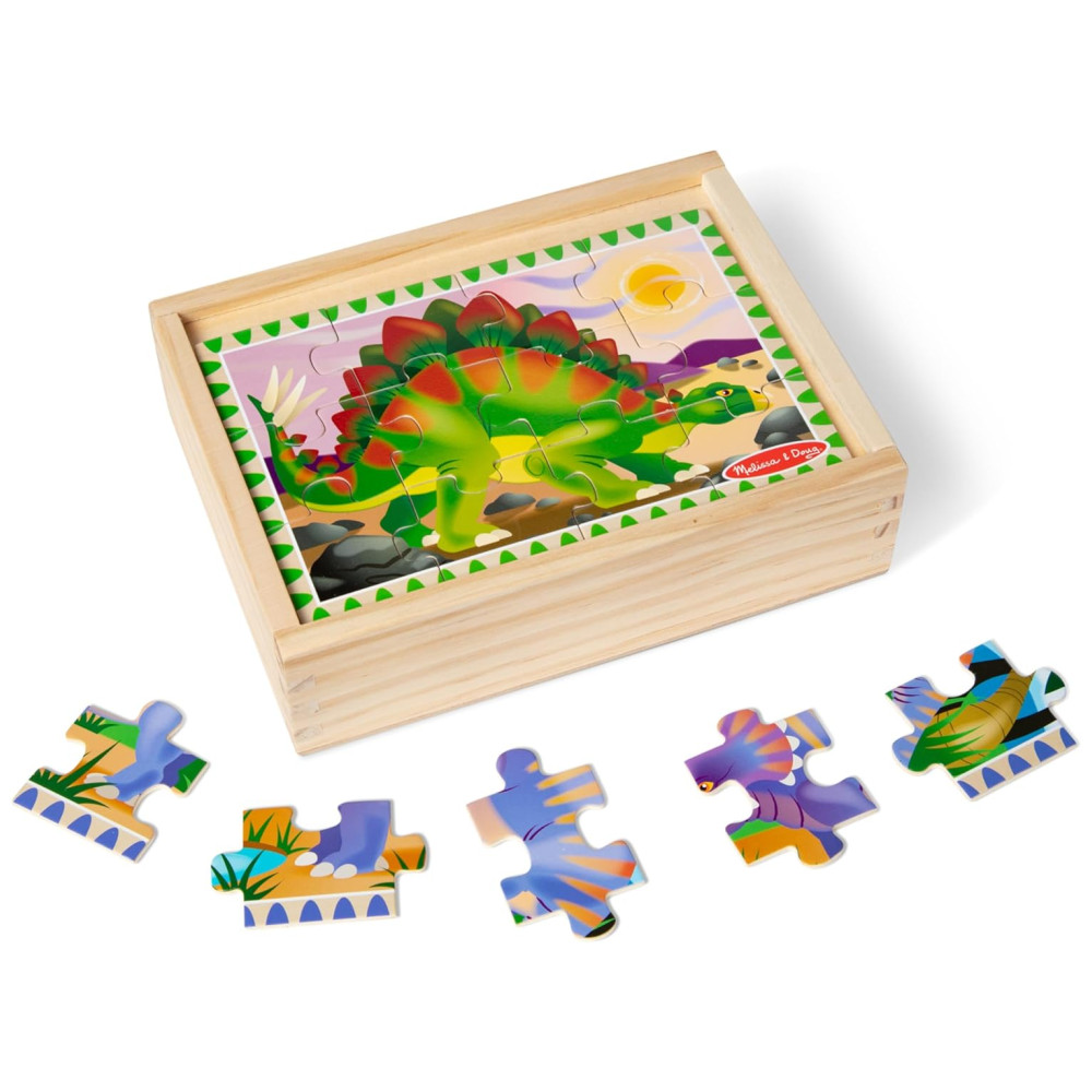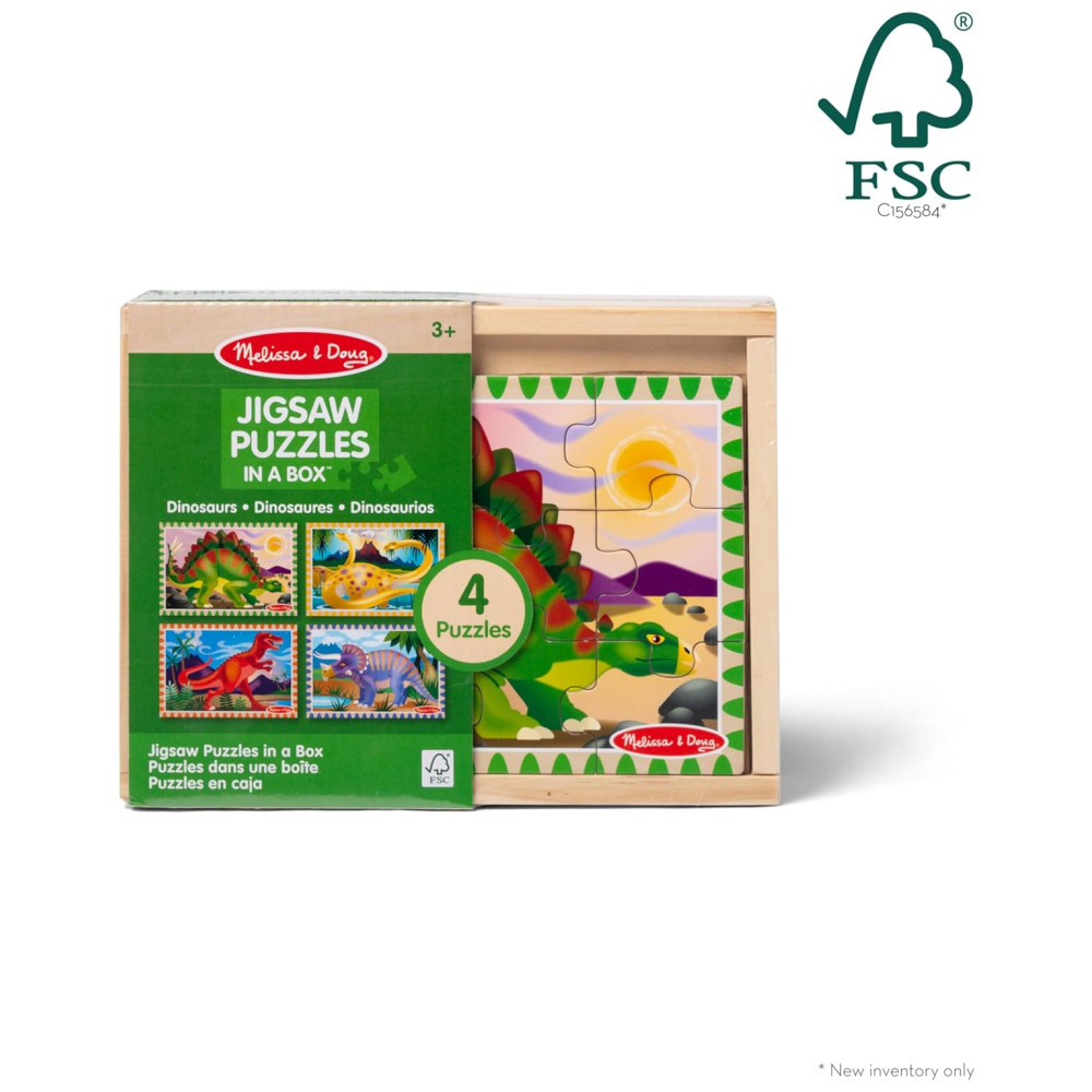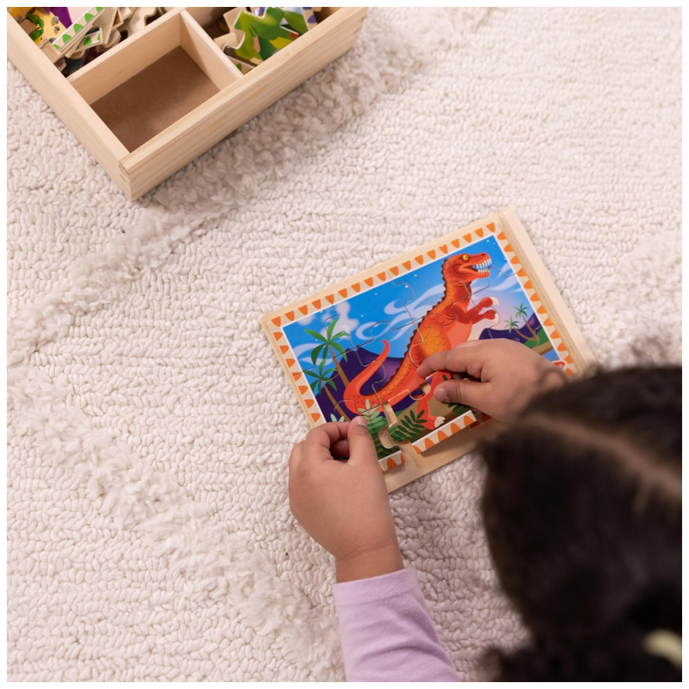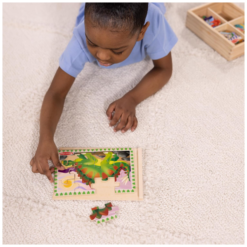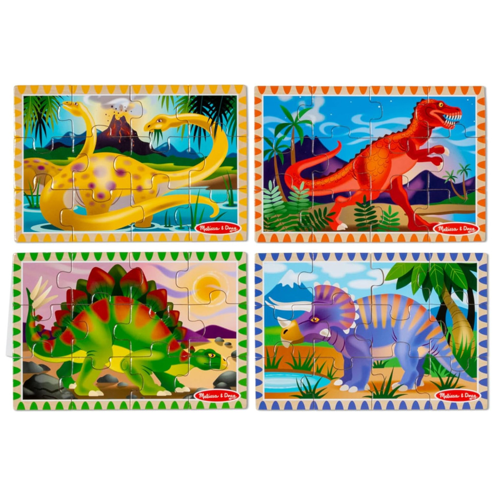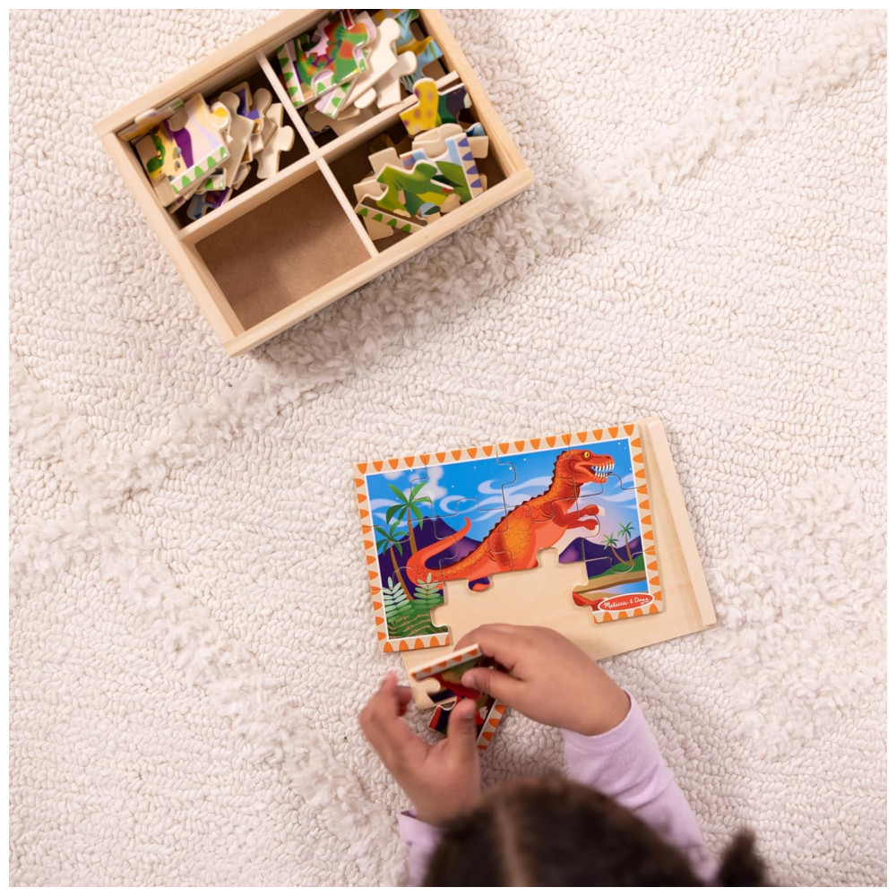 Quebra Cabeça Infantil de Madeira 4 em 1 Tema Dinossauros com Caixa de Armazenamento e 48 Peças Melissa & Doug