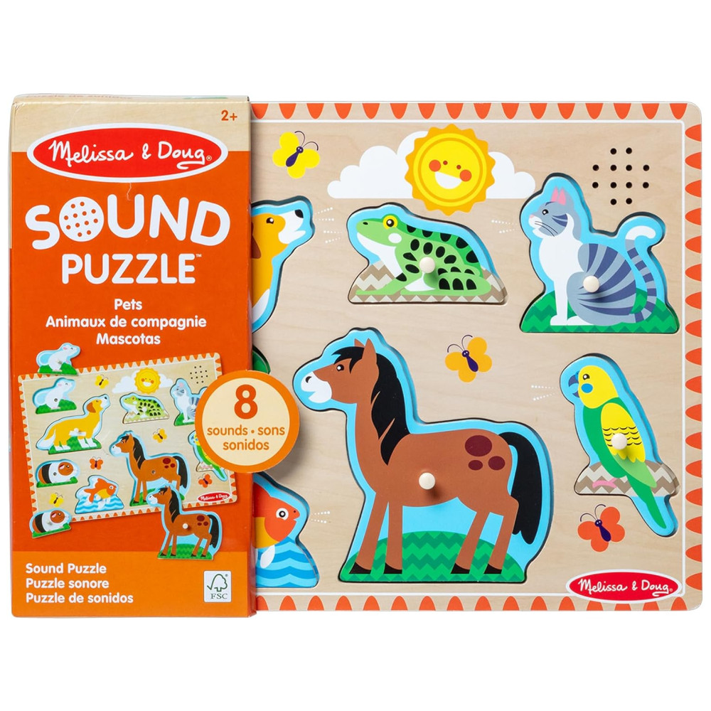 Quebra Cabeça Infantil de Madeira com Efeitos Sonoros de Animais de Estimação e 8 Peças para Crianças Acima de 2 Anos Melissa & Doug