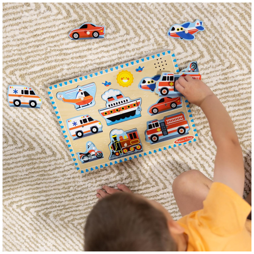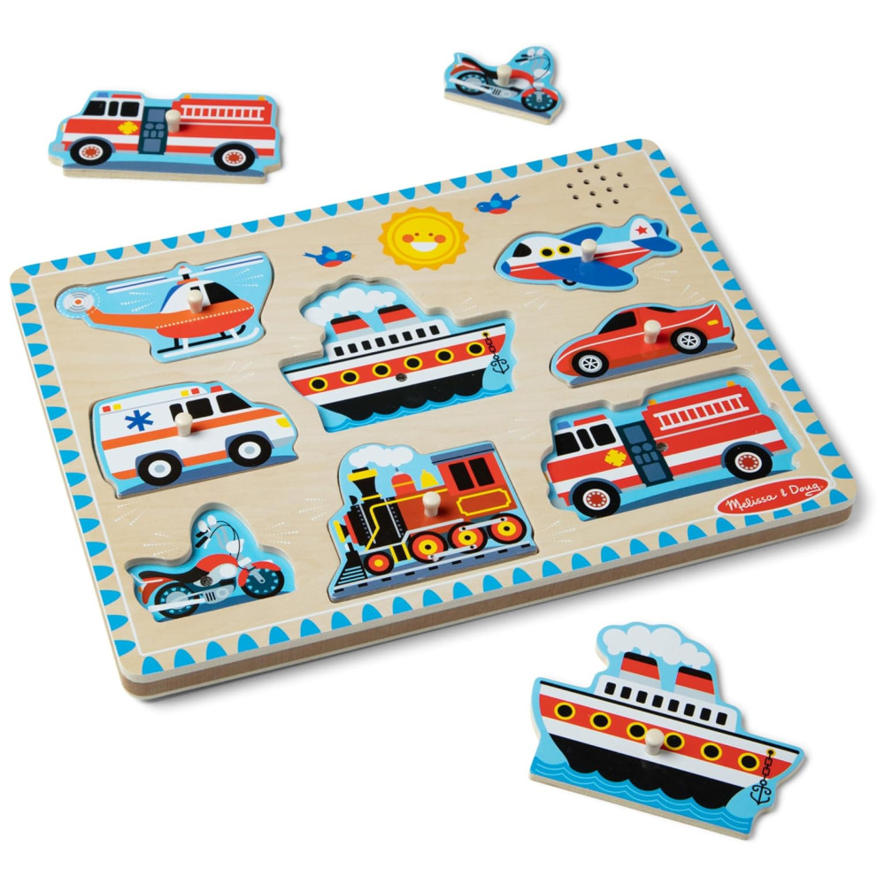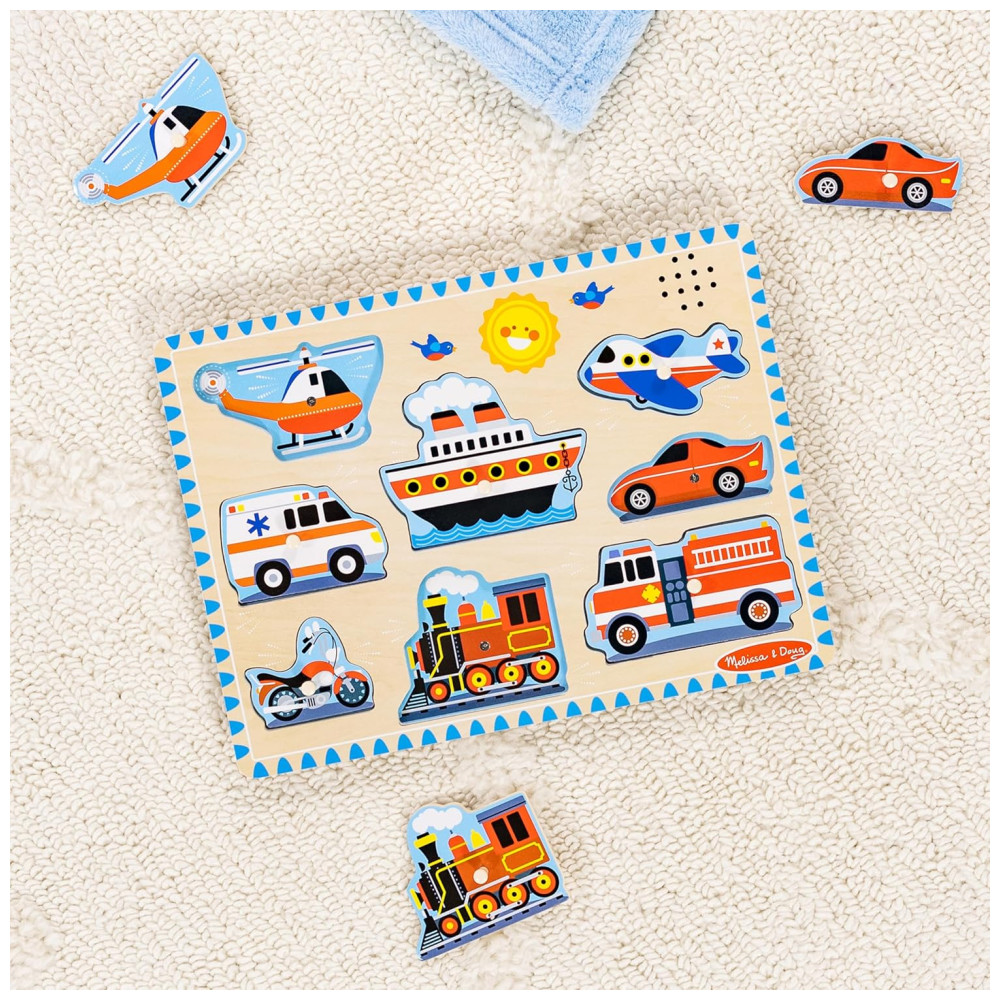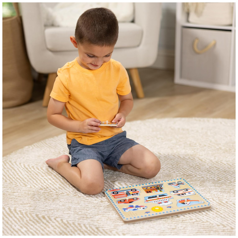 Quebra Cabeça Infantil de Madeira com Efeitos Sonoros de Veículos e 8 Peças para Crianças Acima de 2 Anos Melissa & Doug