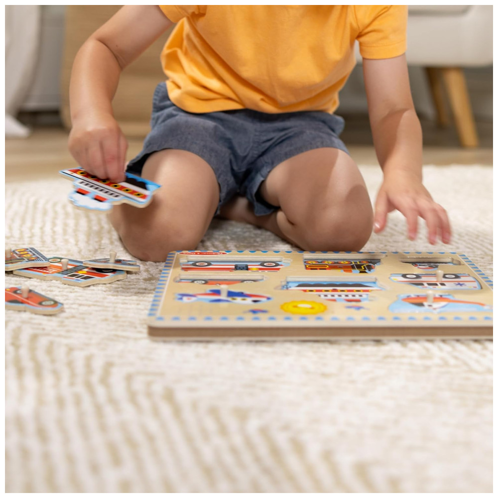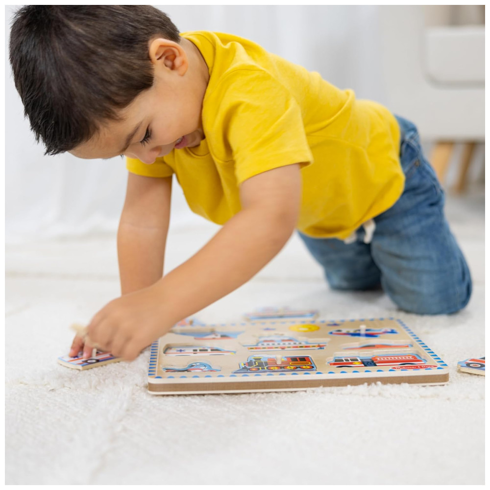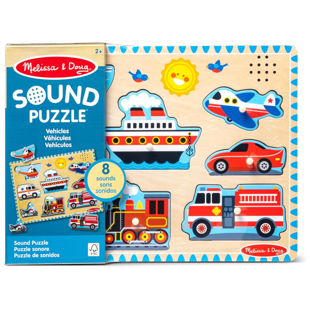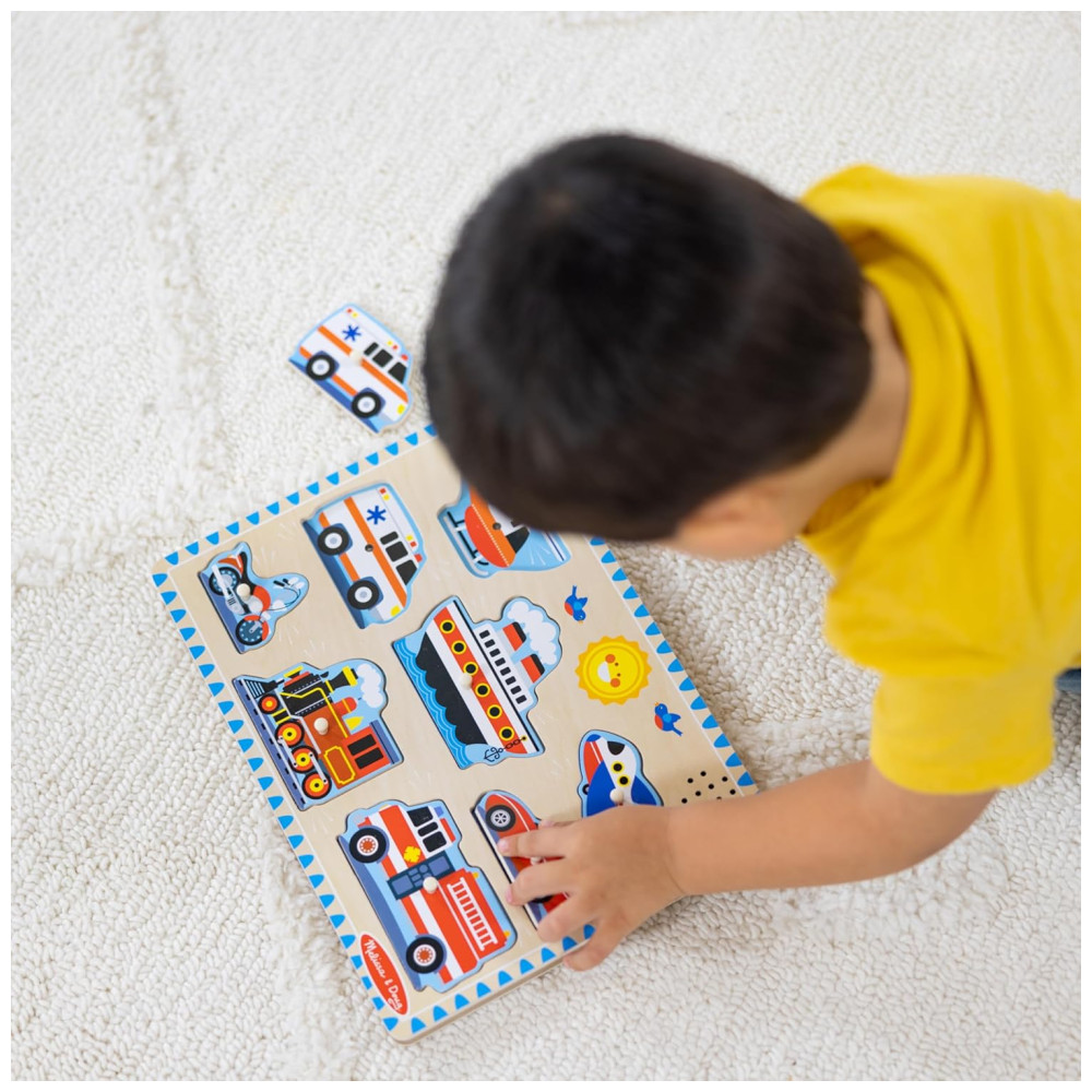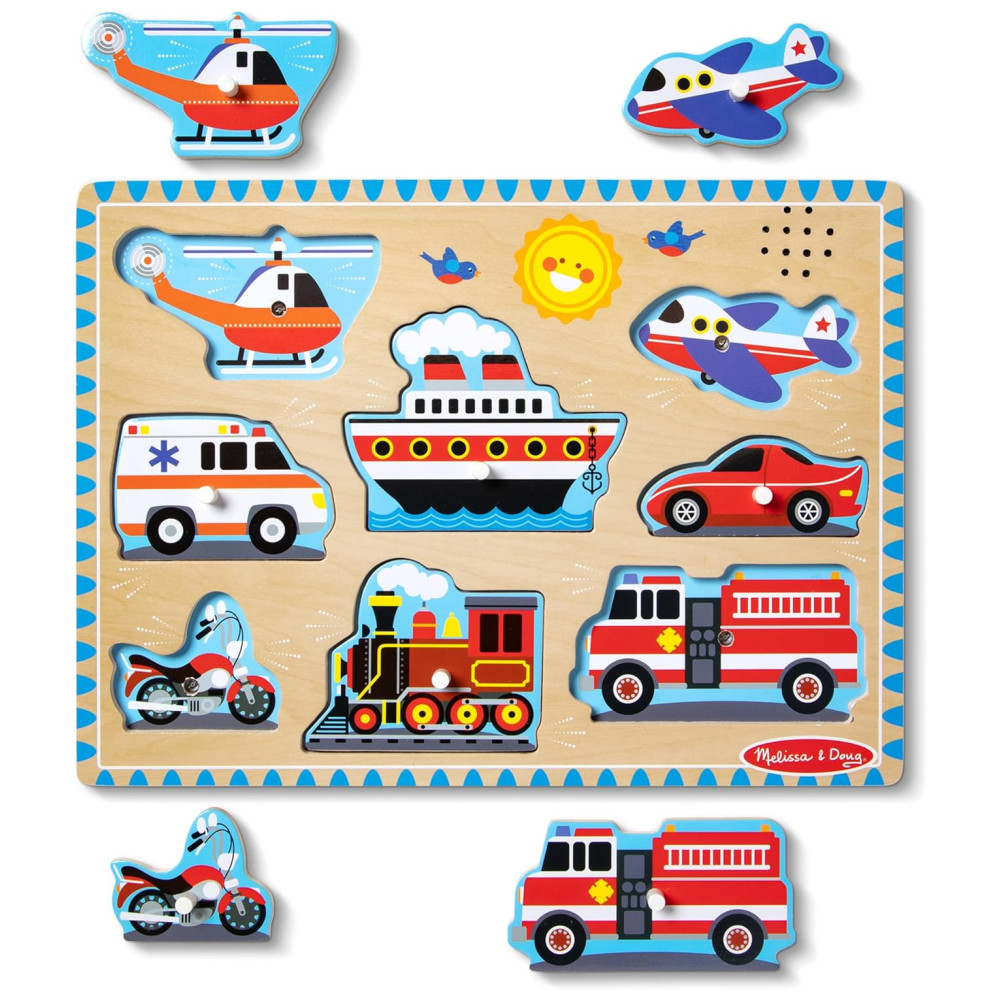 Quebra Cabeça Infantil de Madeira com Efeitos Sonoros de Veículos e 8 Peças para Crianças Acima de 2 Anos Melissa & Doug