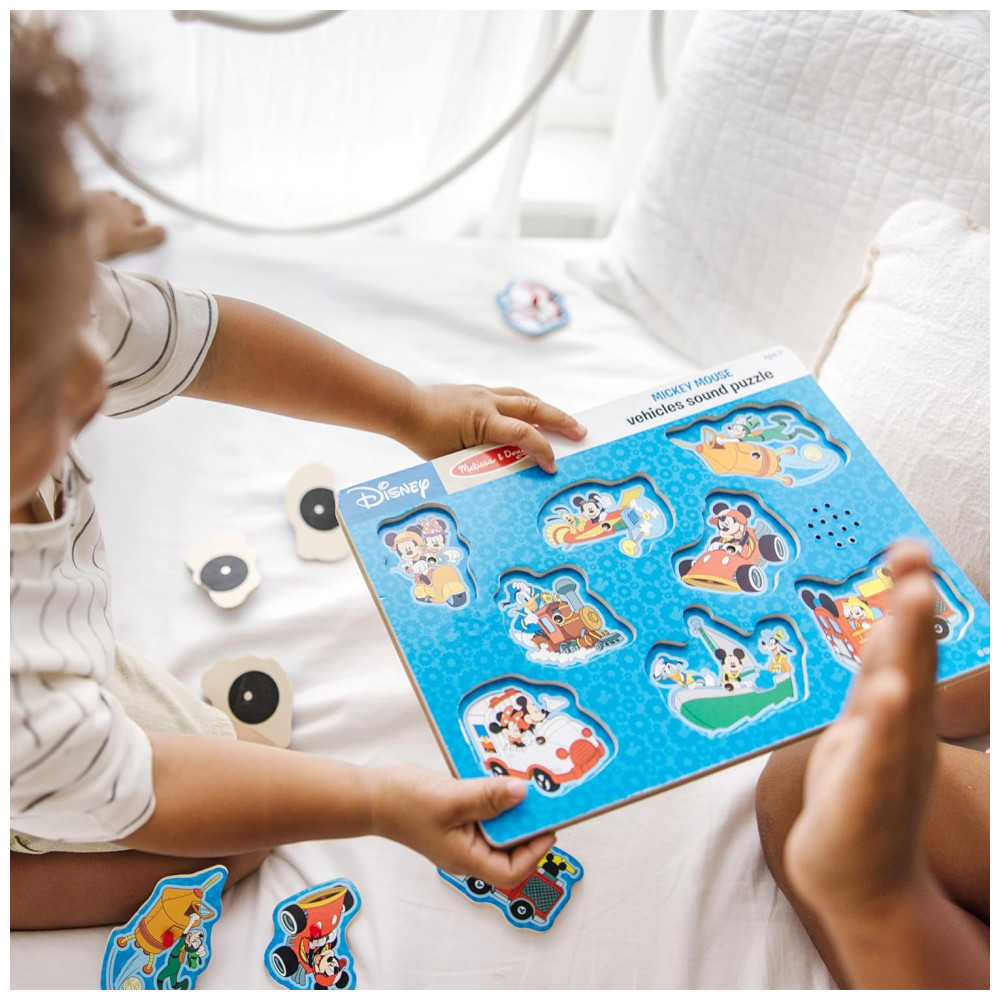 As crianças vão adorar este envolvente quebra cabeça de madeira dos Amigos do Mickey, que traz peças resistentes como caminhão de bombeiros, barco e foguete, além de sons realistas de veículos quando colocadas nas obras de arte correspondentes no tabuleiro. Este brinquedo promove habilidades motoras finas, correspondência e brincadeiras criativas. A Melissa Doug é uma marca com mais de 30 anos de experiência em produtos lindamente projetados que estimulam a imaginação e a criatividade das crianças.