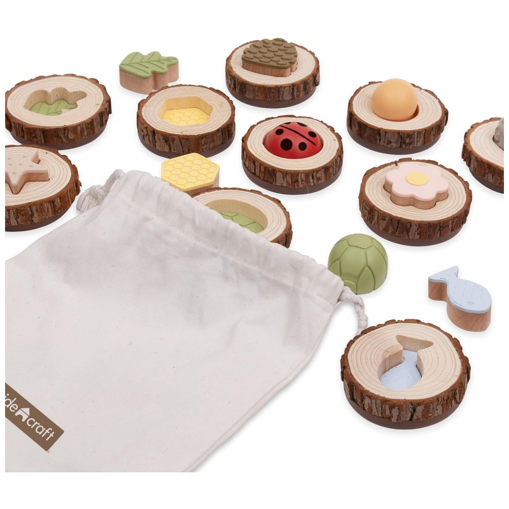 Quebra-cabeça sensorial Guidecraft Nature Feel and Find com 24 peças inspiradas em elementos da natureza e base em “cookies” de madeira