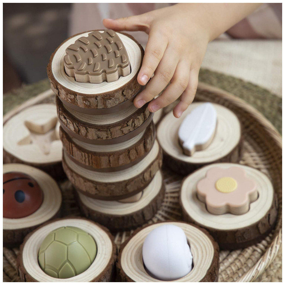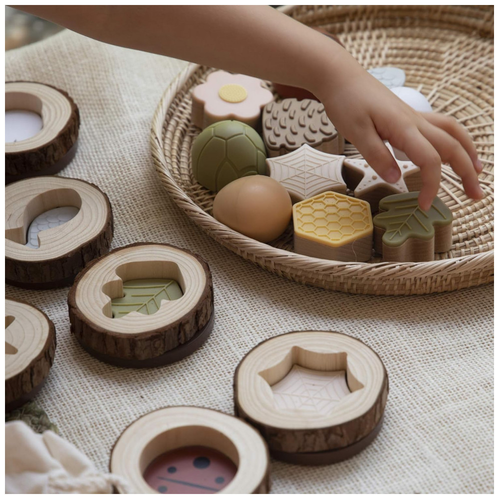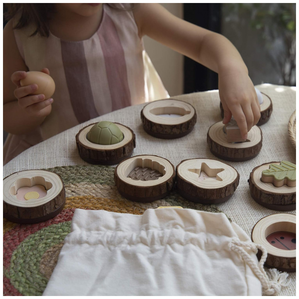 Tipo de produto: Jogo sensorial de pareamento tátil e visual com peças inspiradas na natureza
