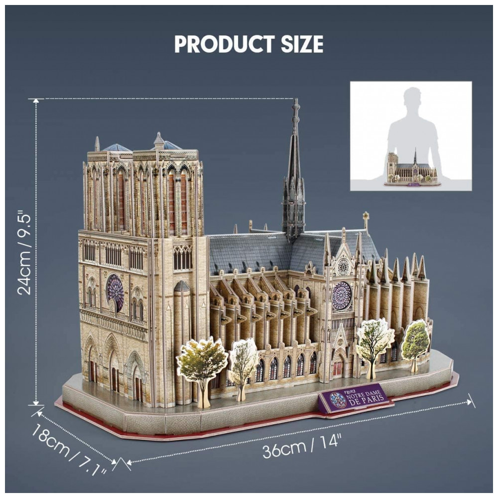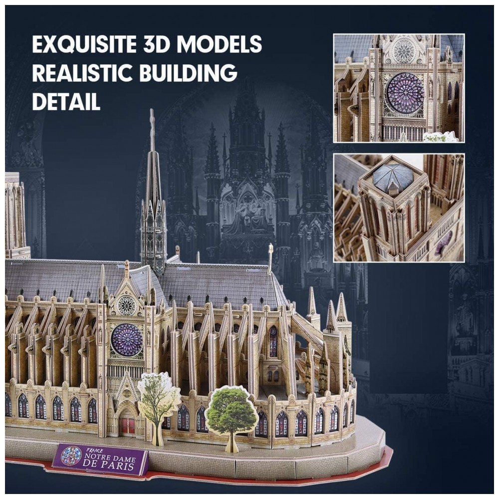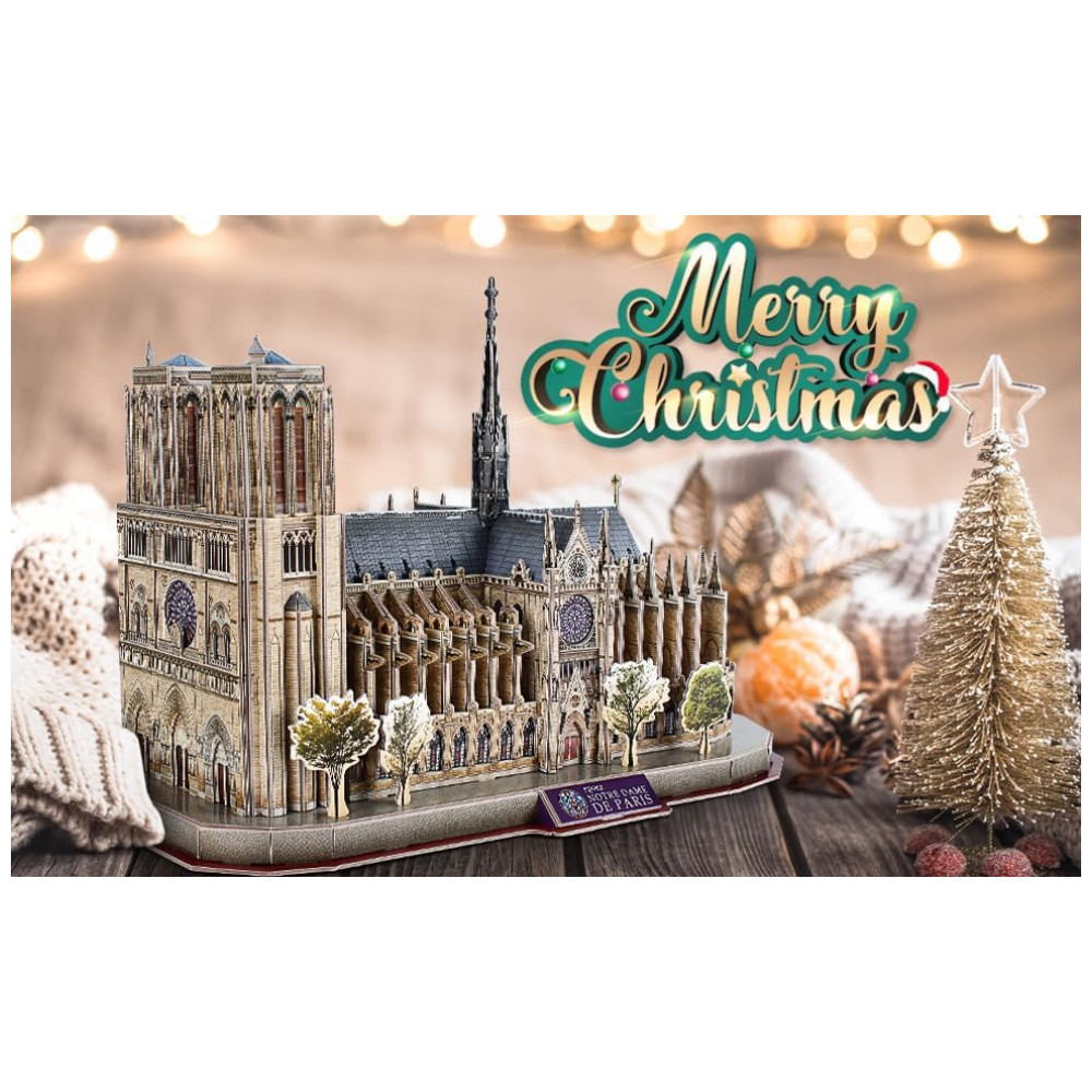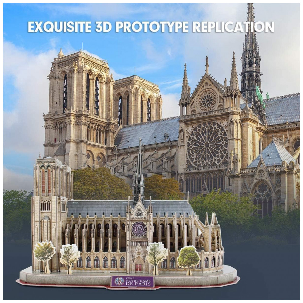 Quebra Cabeças 3D Arquitetura Notre Dame com Led para Crianças e Adultos 128 Peças CUBICFUN DS0986H Branco