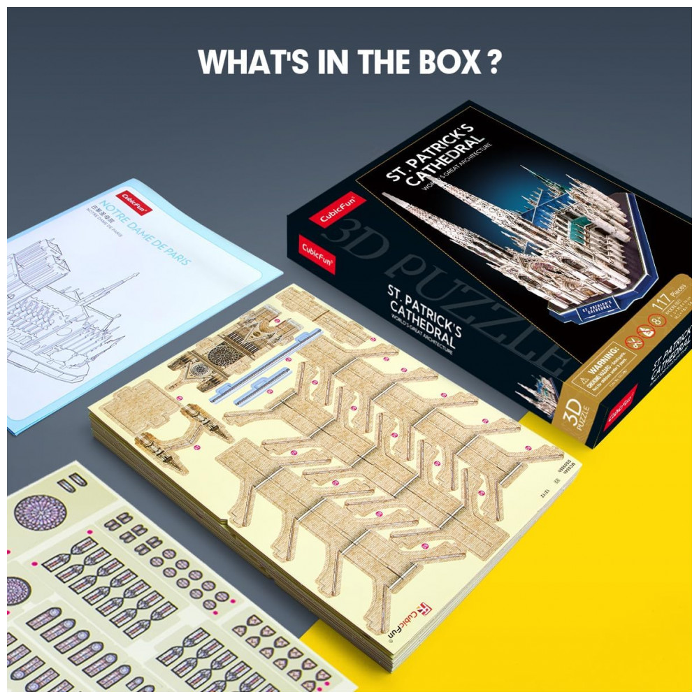 Inclui National Geographic Booklet quebra cabeça modelo 3D CubicFun com um livreto de fotografia, que apresenta a cultura da cidade e o estilo de vida da França por meio de ilustrações requintadas, juntamente com texto evocativo. Durante a montagem, você obterá muito conhecimento histórico da arquitetura de Paris no folheto da National Geographic.