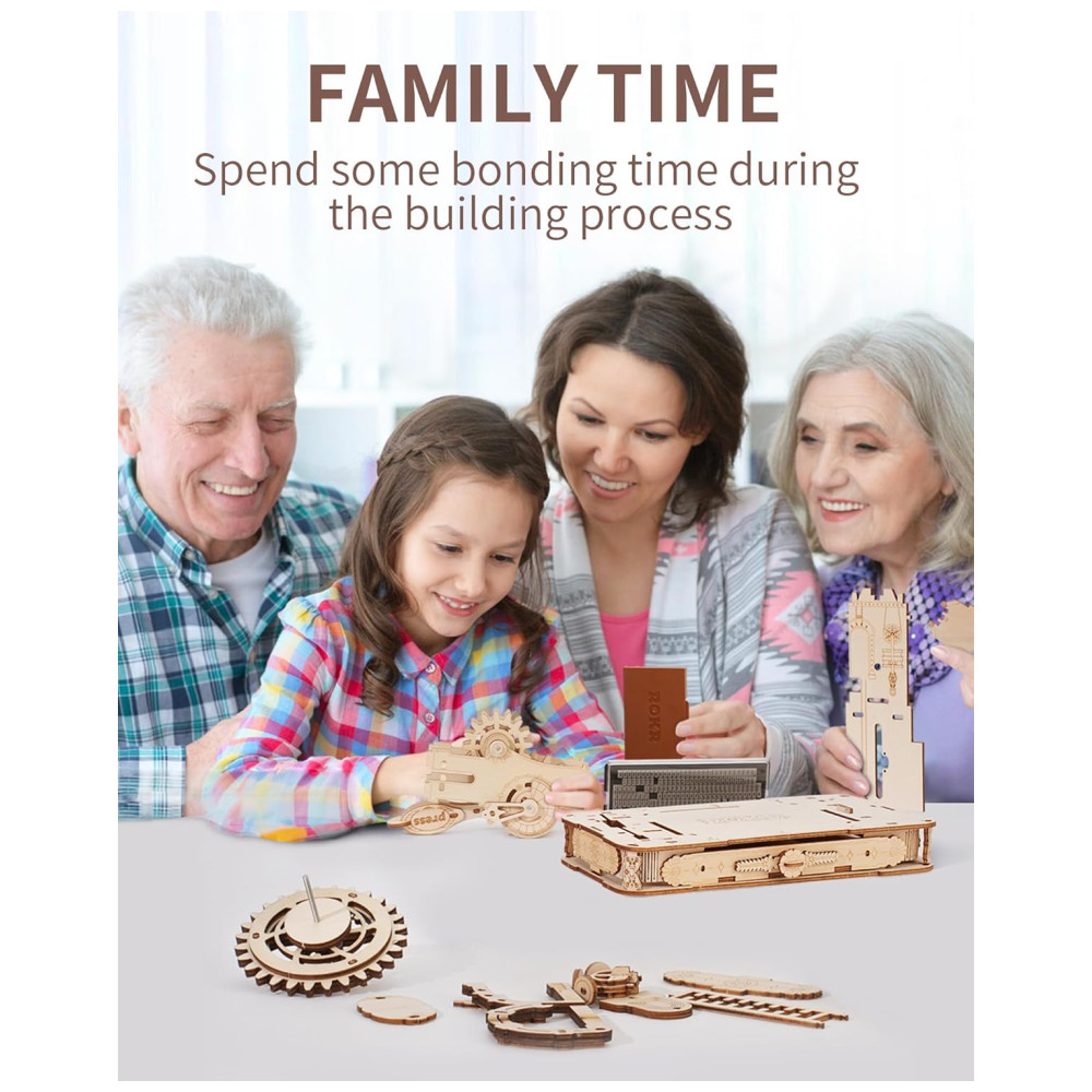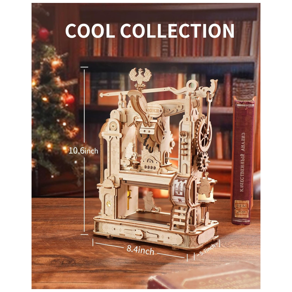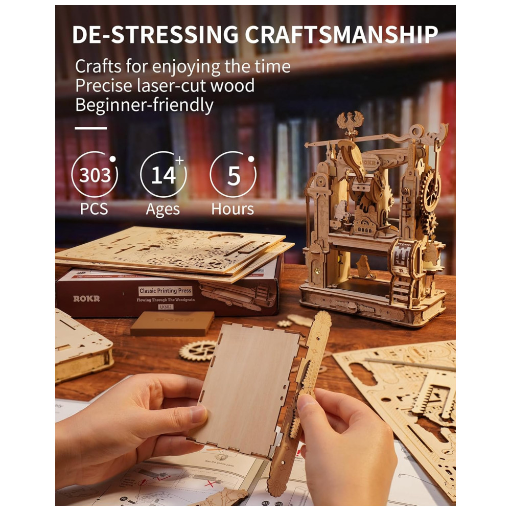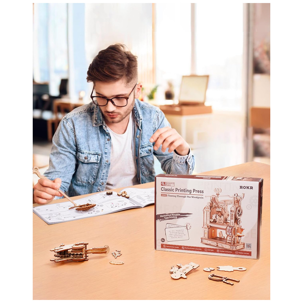 Quebra Cabeças 3D em Madeira para Adultos Carimbo Mecânico com 303 Peças e Luz LED ROKR LK602 Marrom