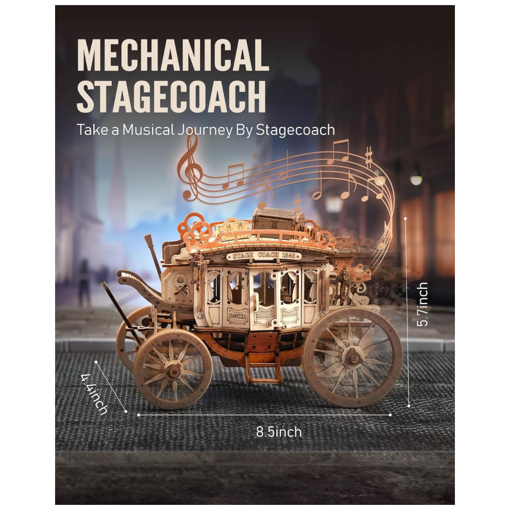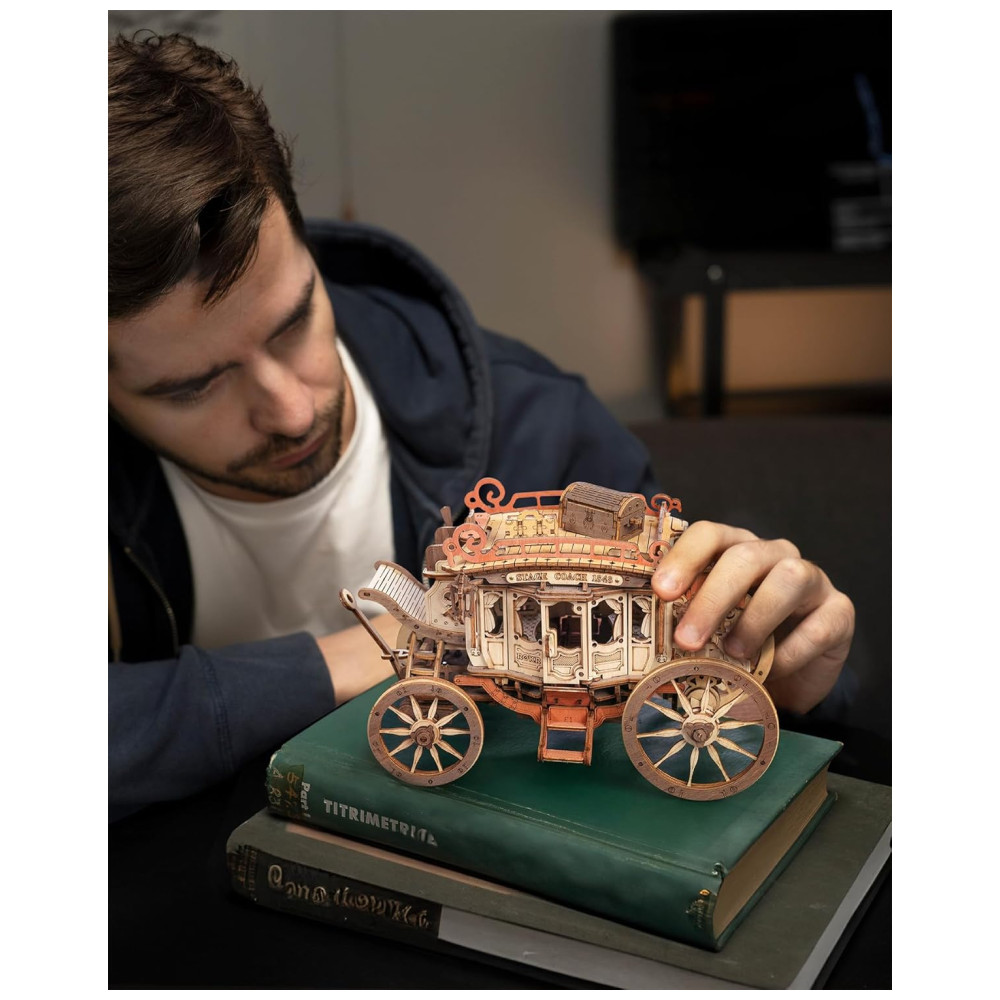 Este quebra-cabeça de madeira 3D oferece uma recriação meticulosa da icônica diligência utilizada para transporte no Velho Oeste, Inglaterra e EUA entre os séculos XVII e XIX. Além de seu apelo como item decorativo elegante, o carro é equipado com compartimentos secretos estrategicamente posicionados no teto e no interior, perfeitos para guardar pequenas surpresas. Ao dar corda, o modelo se movimenta ao som encantador de Greensleeves, adicionando uma dimensão sensorial à sua experiência.