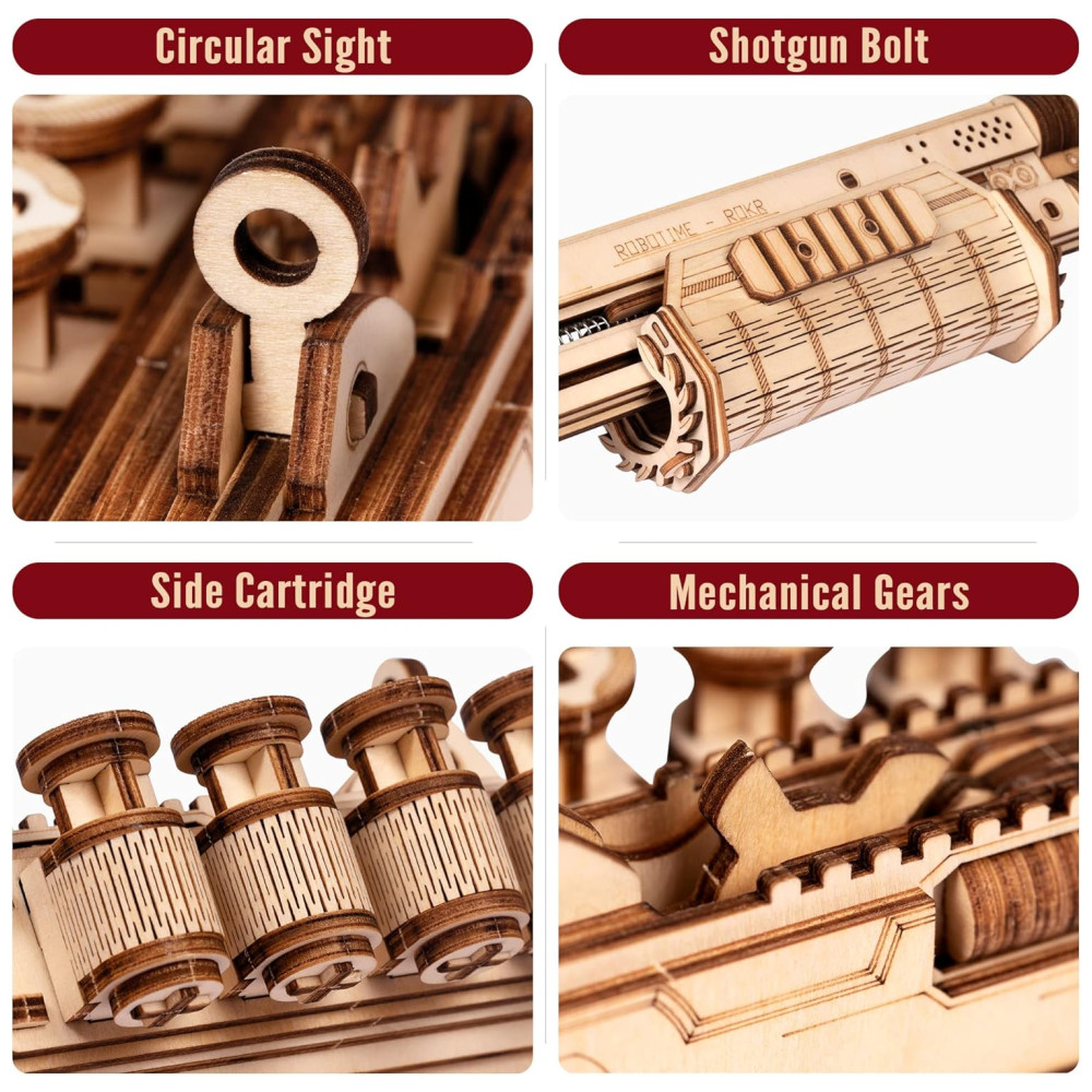 Quebra Cabeças 3D em Madeira para Adultos Tema Espingarda com 170 Peças e Manual de Instruções ROKR M870 Marrom