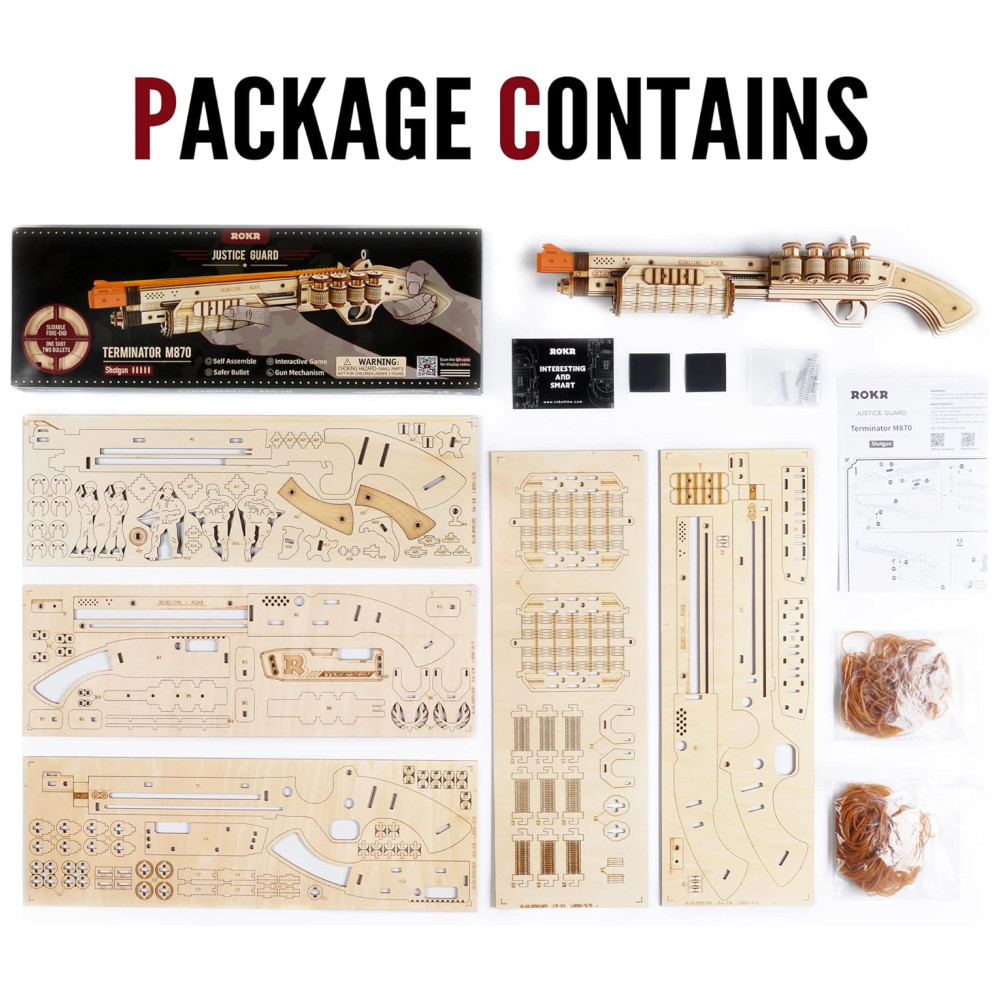 A espingarda de brinquedo ROKR é uma excelente opção para quem deseja se preparar para um confronto épico. Com apenas 1,5 hora de montagem, você pode obter uma espingarda que pode ser carregada e disparada. Este kit de armas com elástico é um ótimo presente de feriado ou aniversário para mulheres e homens. O pacote contém instruções, compensados de qualidade, elásticos, etc. Peças sobressalentes também estão incluídas para danos e perdas acidentais.
